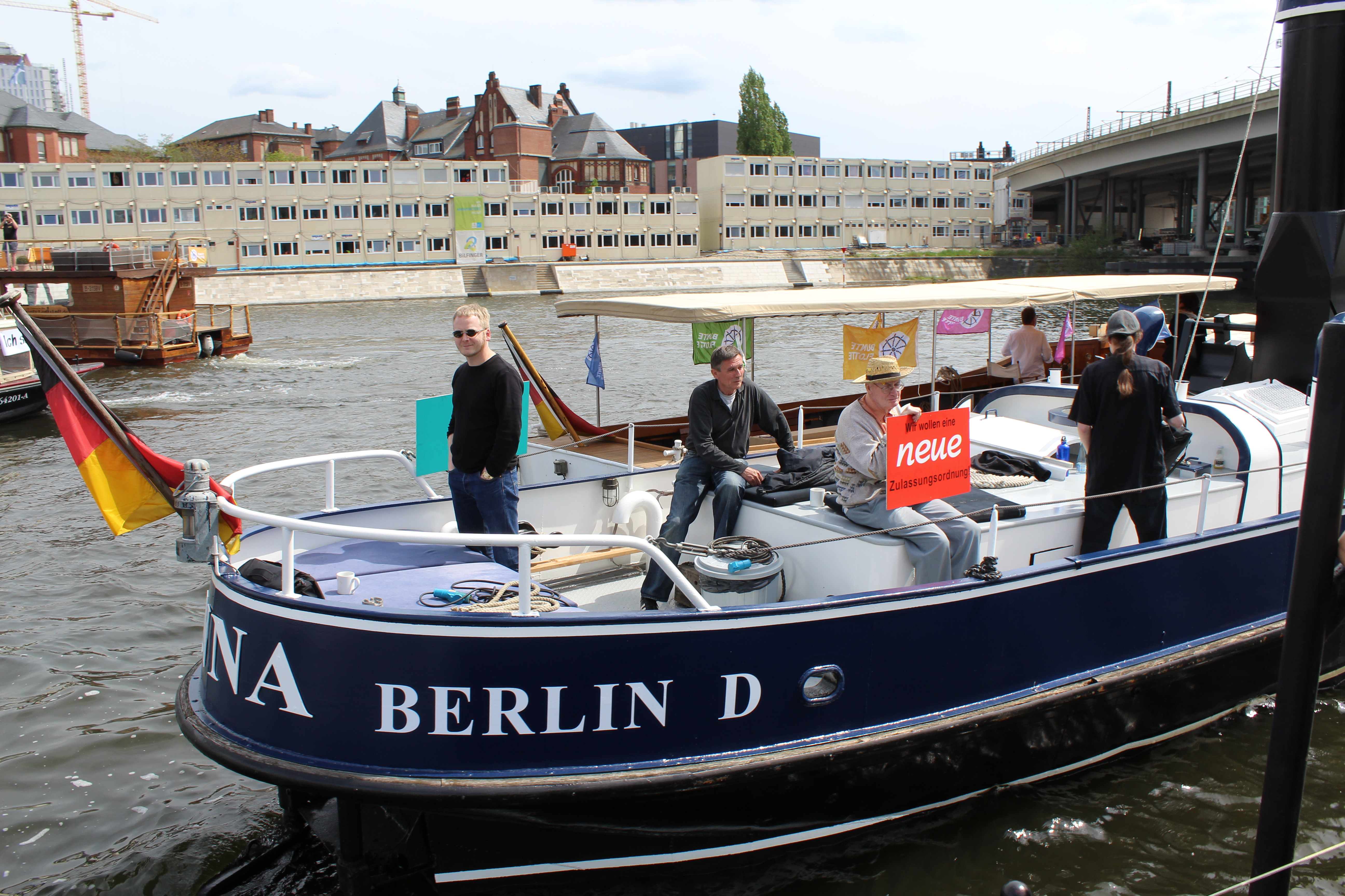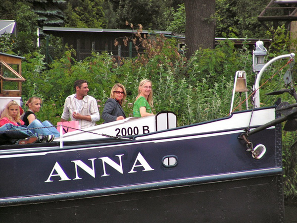 Ship Anna on a boat tour through Berlin with tilted chimney