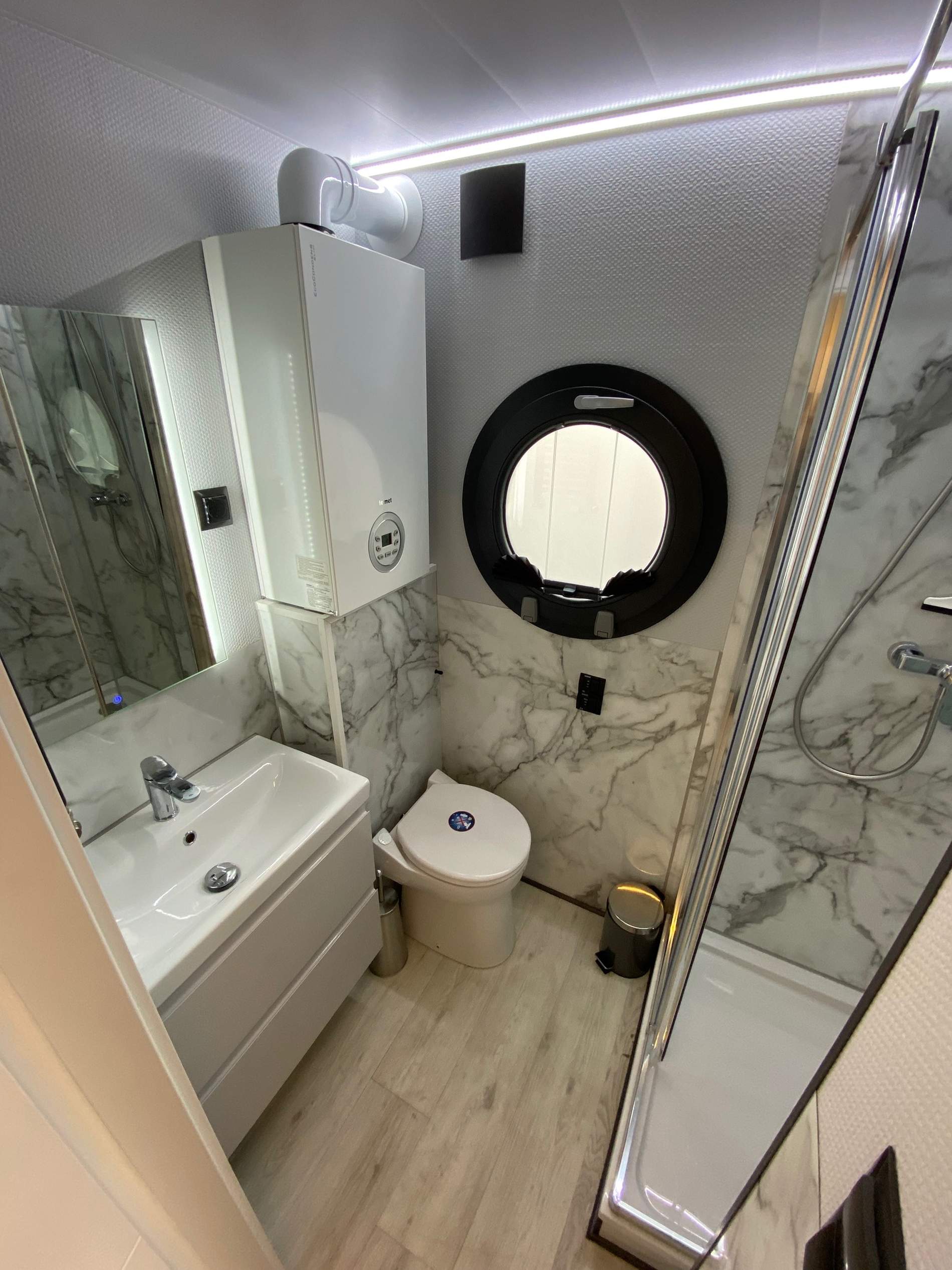 The "La Mare Apart EL" offers enough space for two comfortable bedrooms and two separate bathrooms on approx. 35m² of living space. Solar energy and an inverter ensure comfort and independence. The hot water heating system ensures a great holiday on the water even in autumn and winter. The built-in bow thruster makes manoeuvring in the harbor easier.