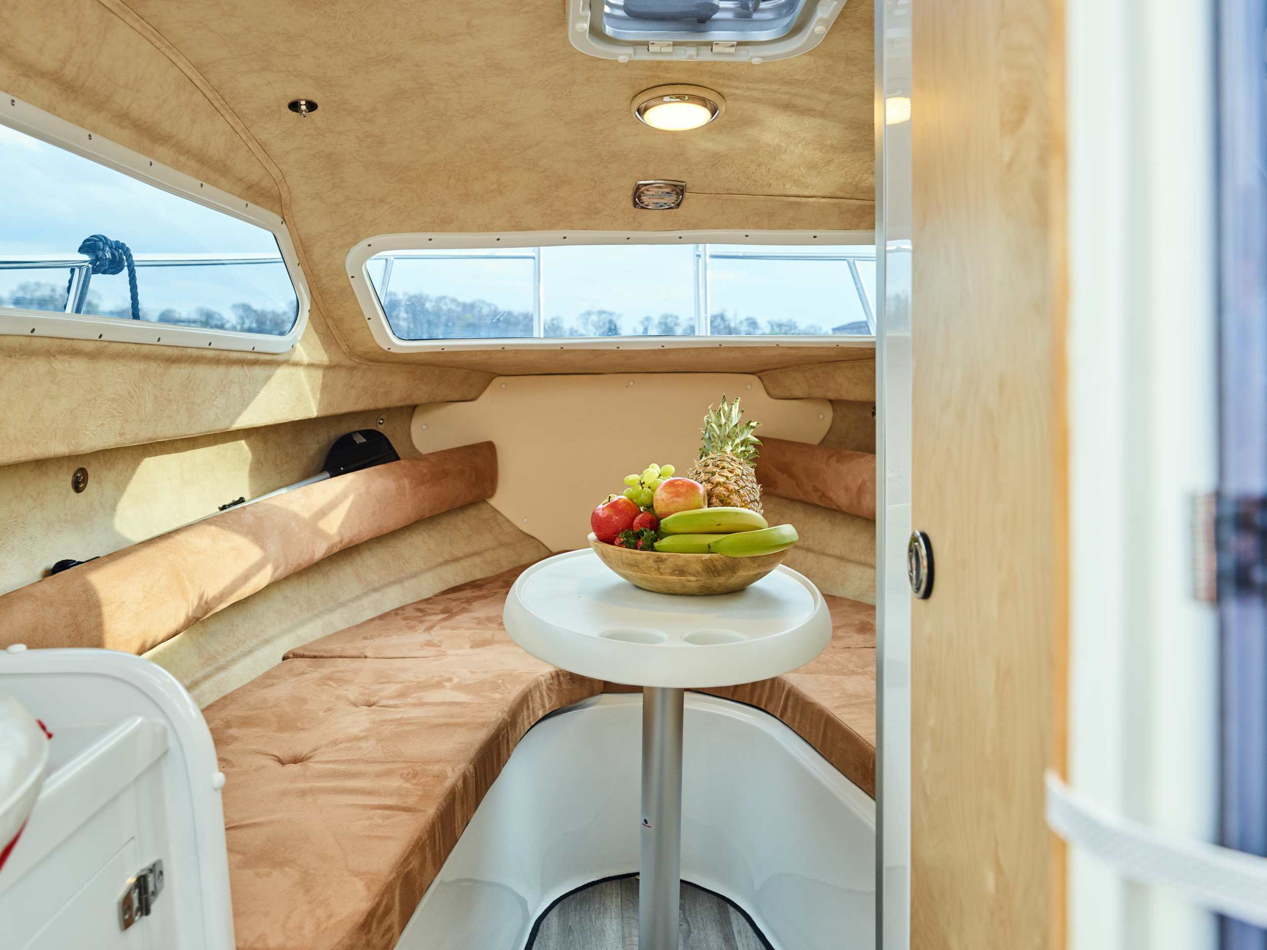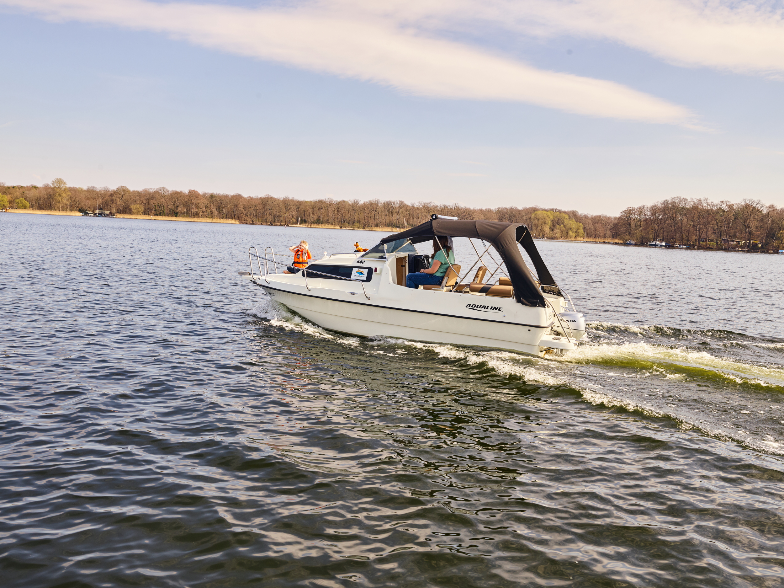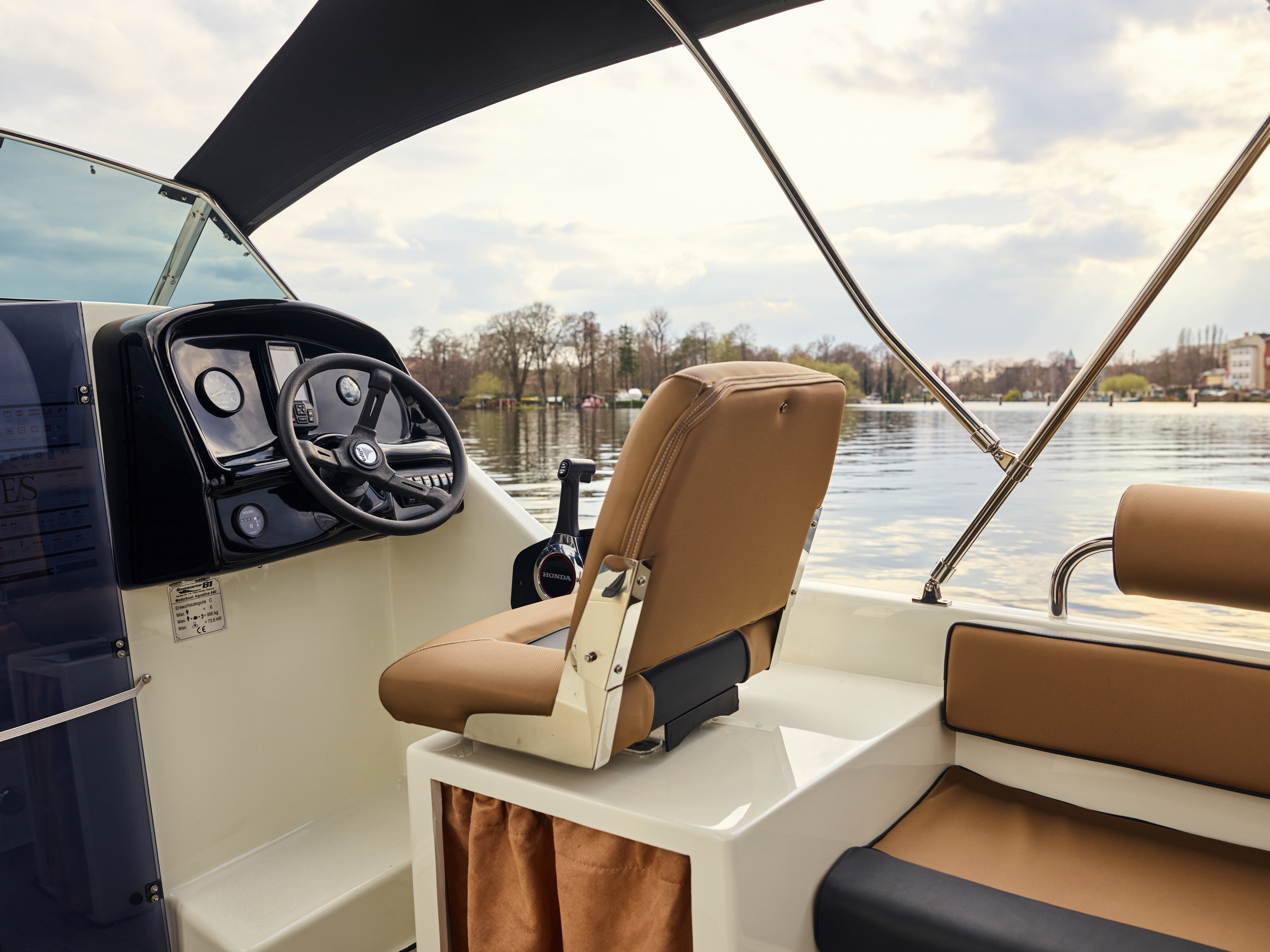 The daycruiser 640 can carry up to 6 people and offers plenty of space for your boat trip in Berlin.