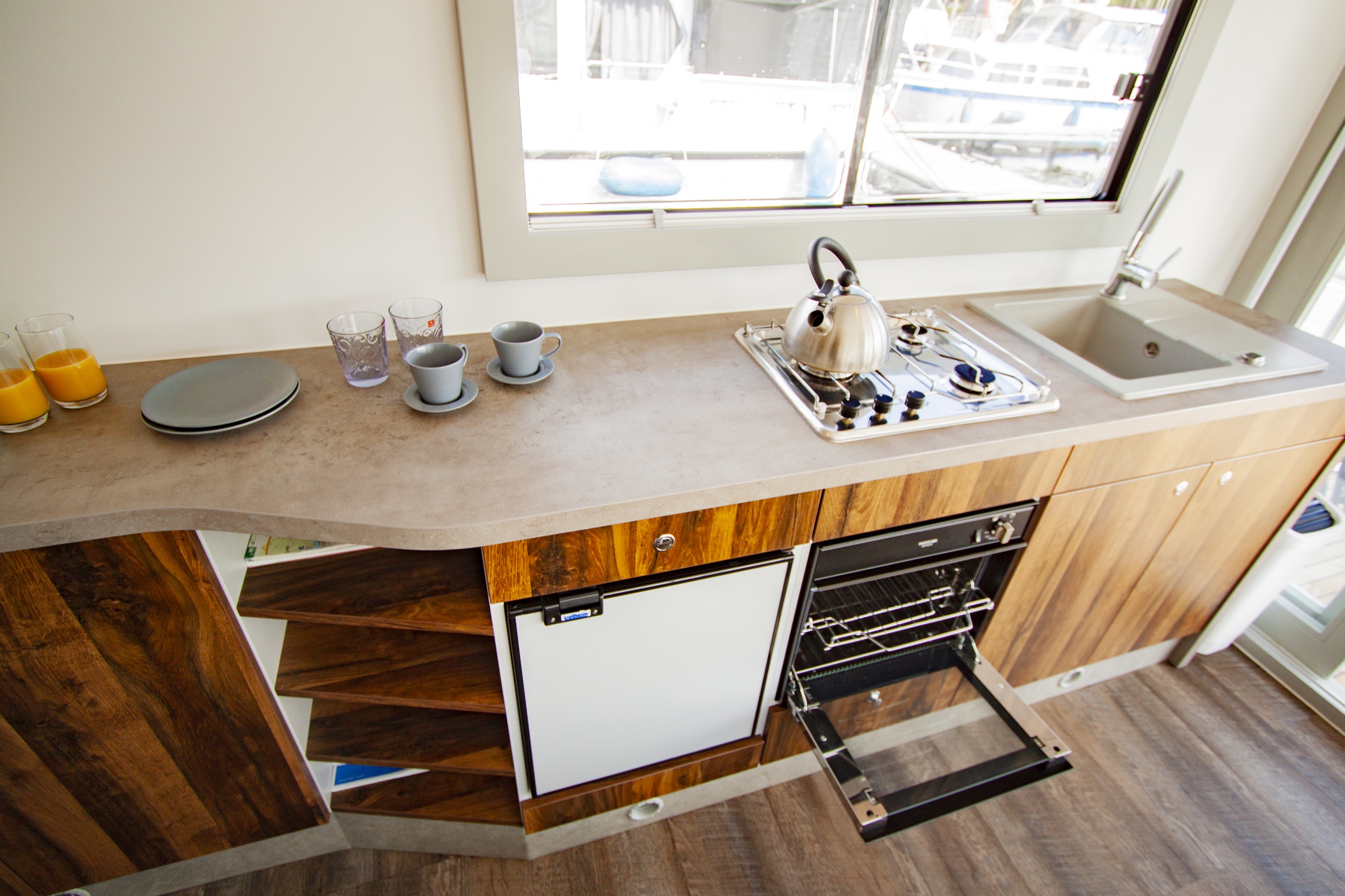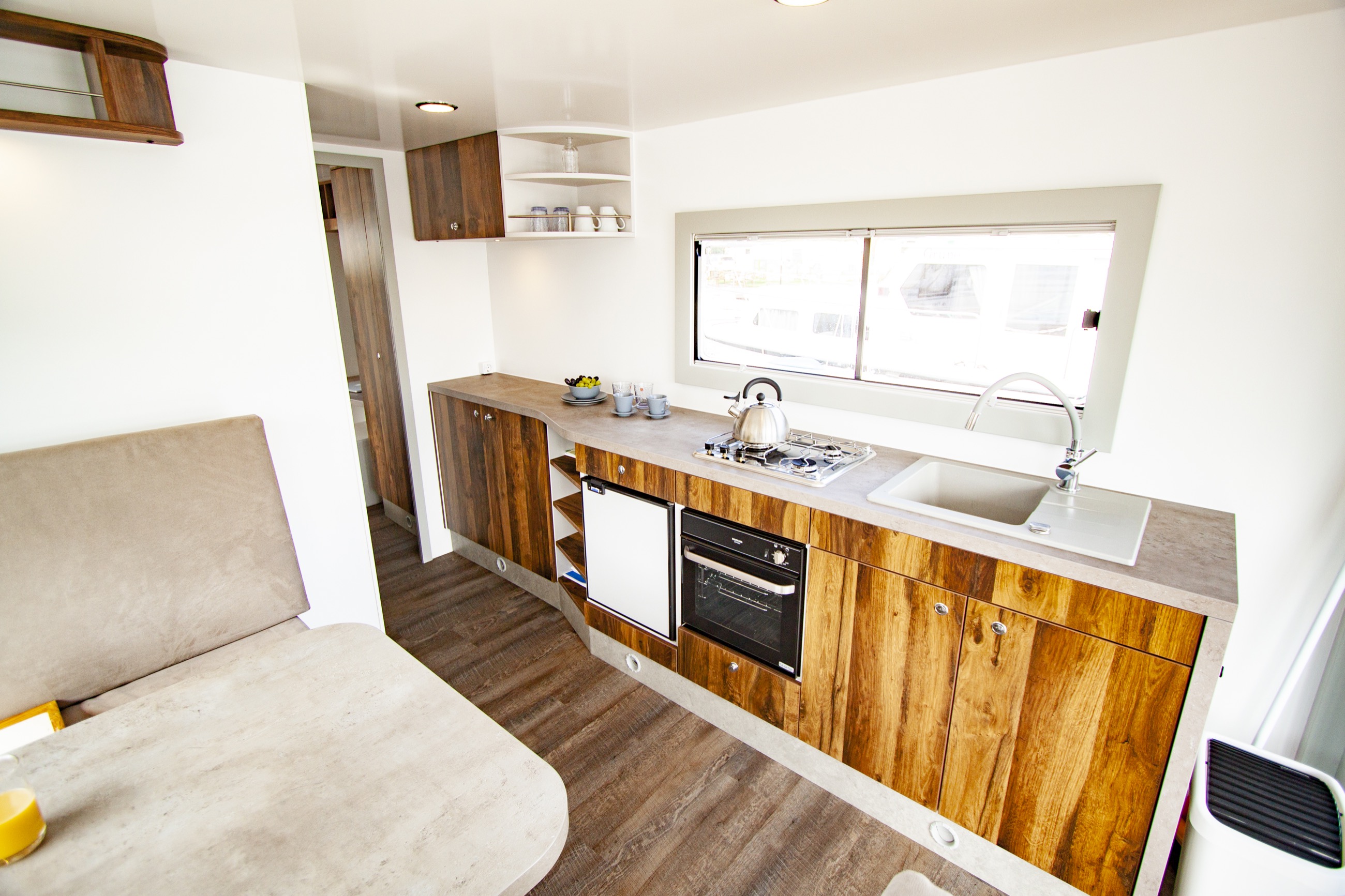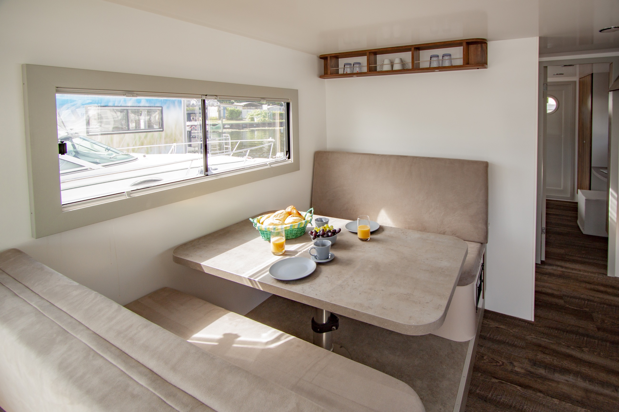 Experience your next vacation on the floating home. Our Flexmobil 10.0 is ideal for your family vacation and offers space for up to 4 people. The handling is very easy and quickly learned. It can be booked without a driver's license.