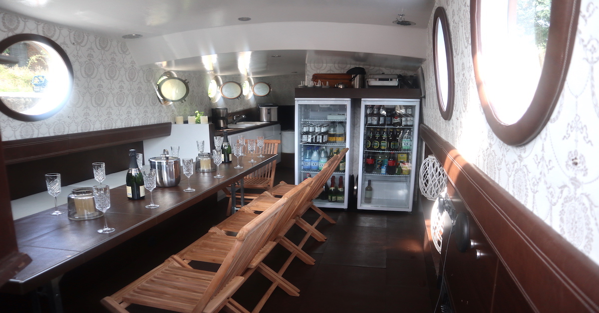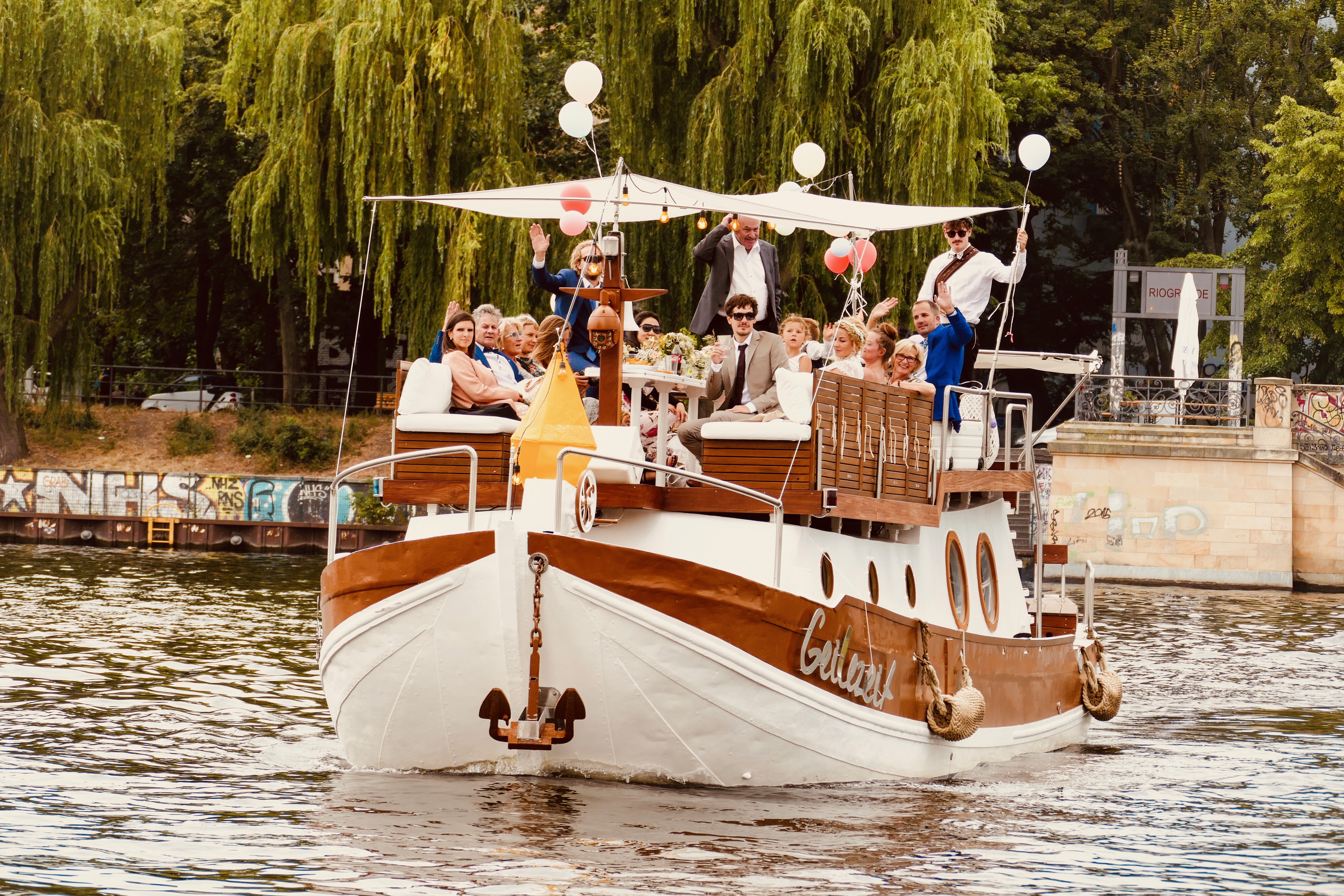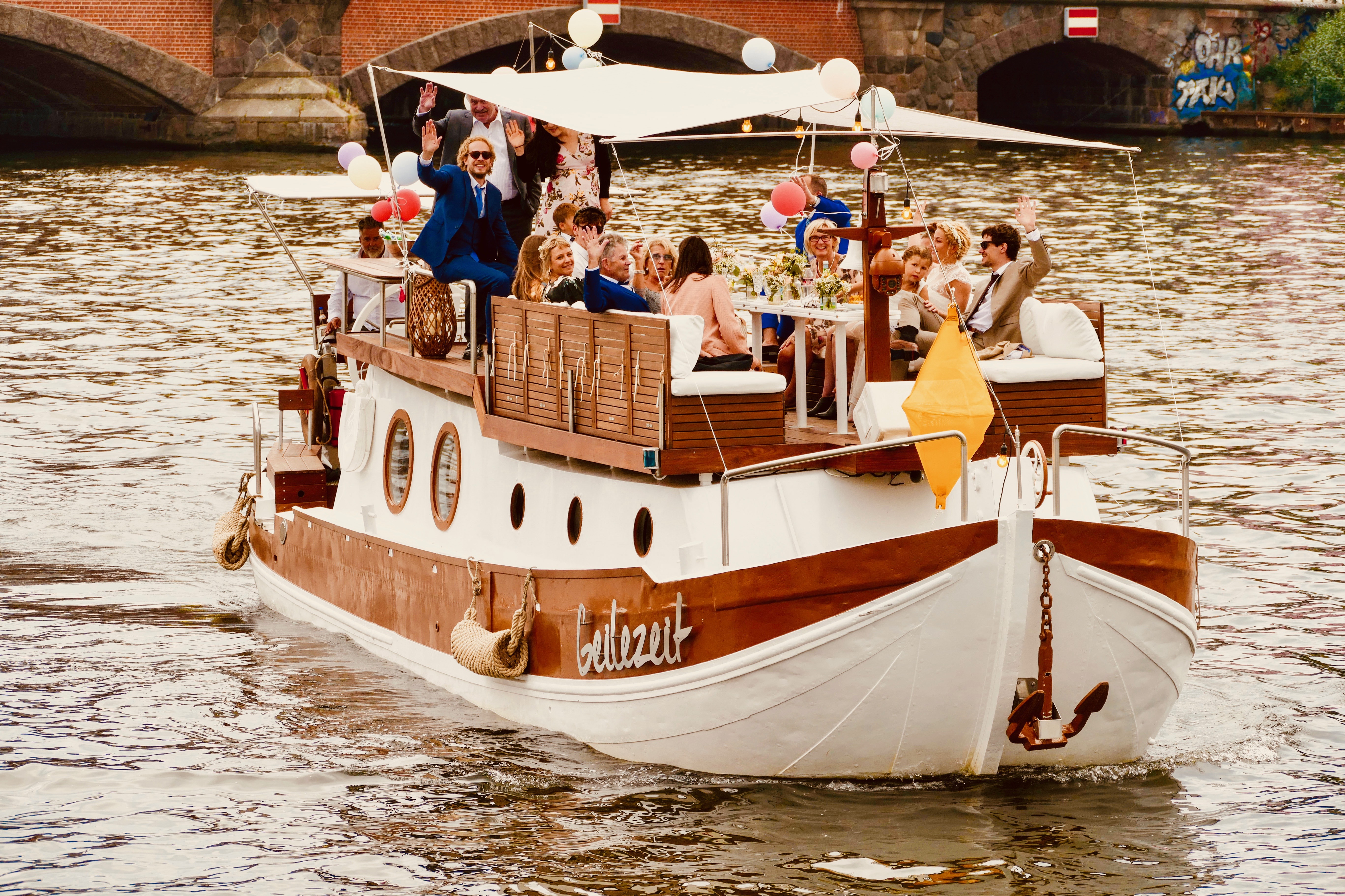 Whether swimming tours, sightseeing or team events, this boat is optimally equipped. We offer tours in the green southeast of Berlin or through the city center. You are welcome to inquire about individual routes.