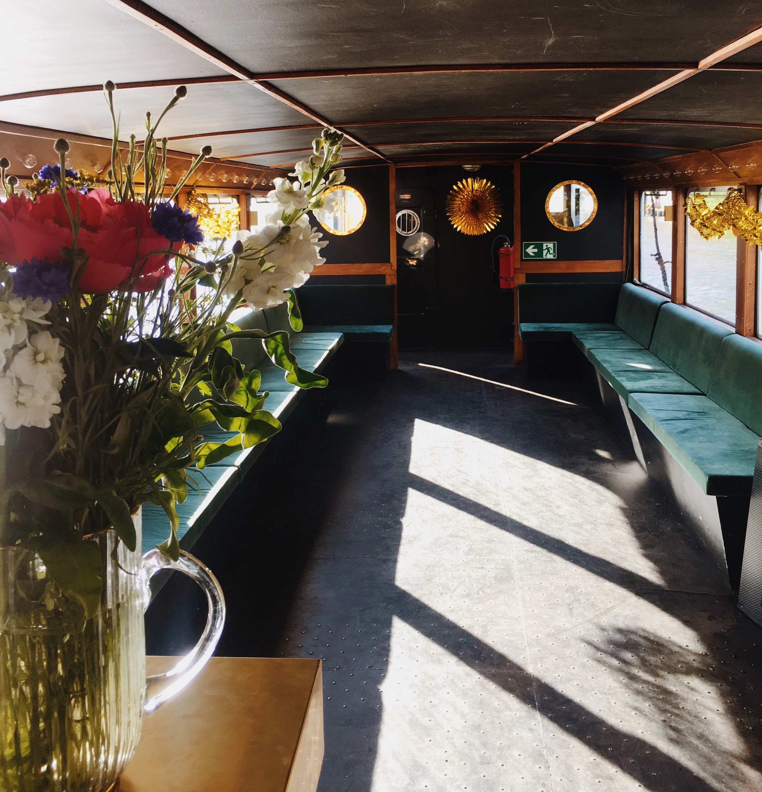 This classy Berlin party ship radiates the charm of the golden 20s. The foredeck invites you to enjoy the sun while the saloon features precious woods and a lot of beautiful details. One gets the impression of a cocktailbar from times long past.