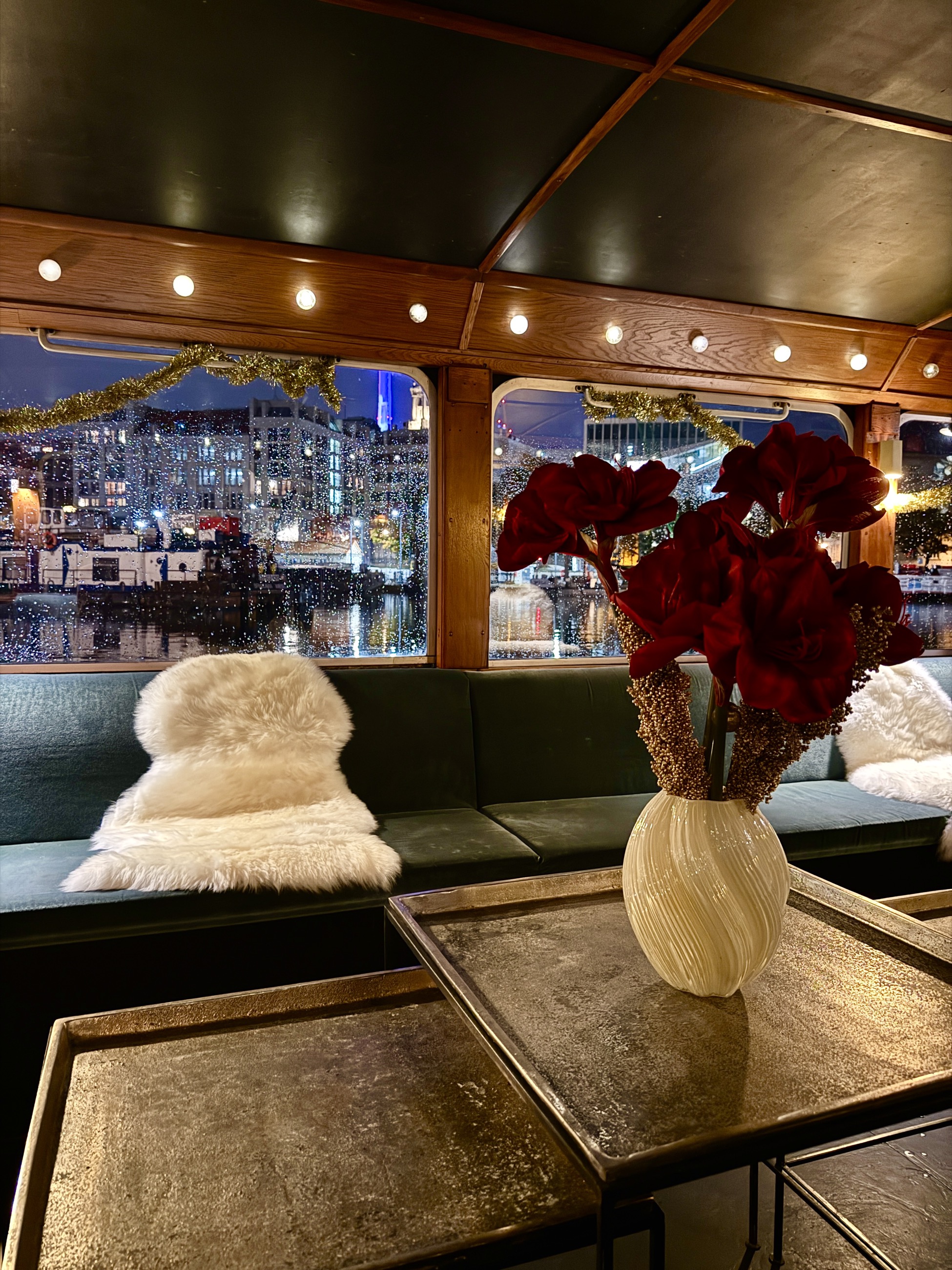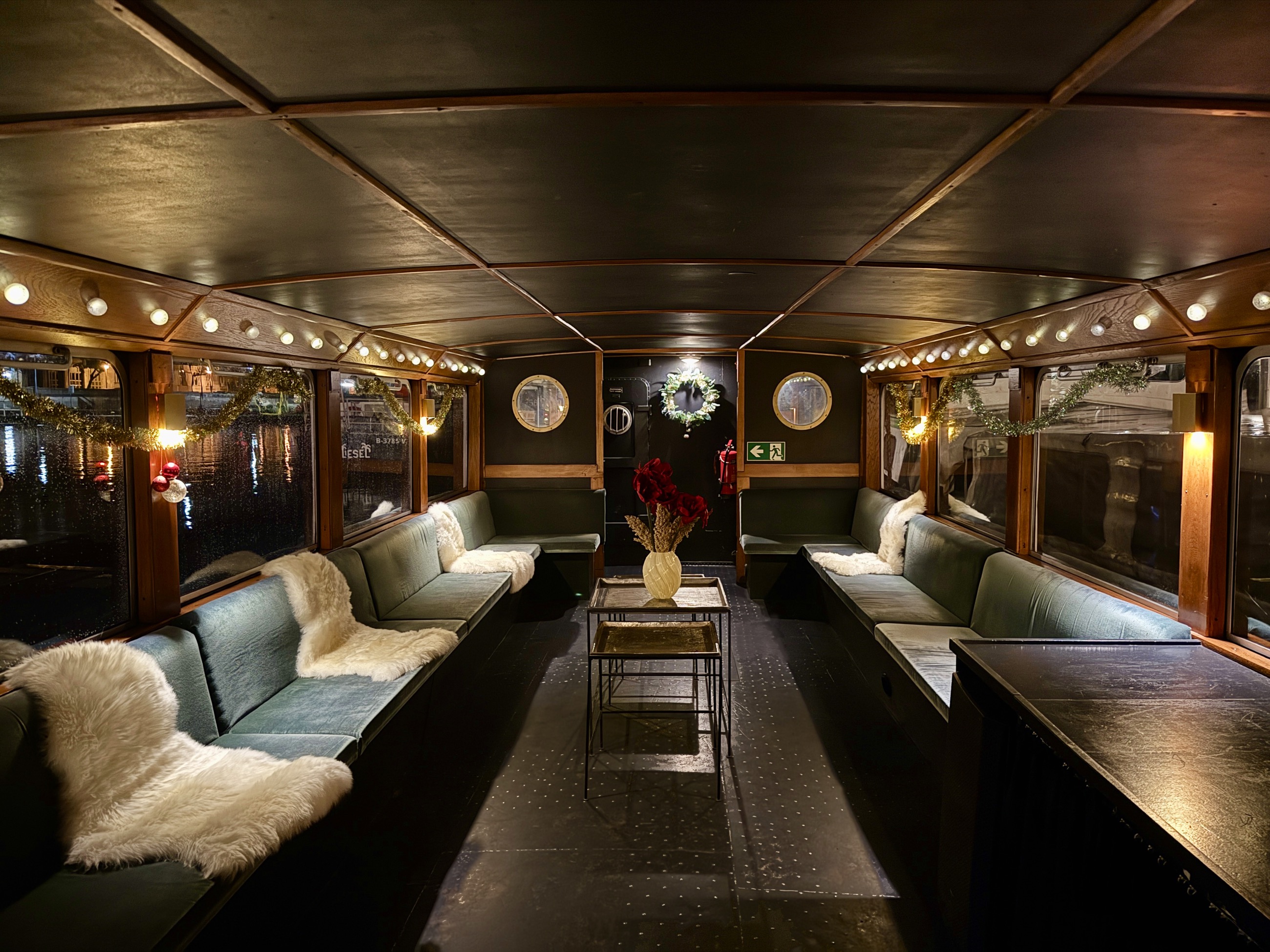 All windows can be lowered to the floor to open the saloon at sunny days. The quarterdeck features a cosy outside sitting area for 8 guests. Your own catering is allowed at no extra charge. Drinks always have to be bought at the bar. It is not possible to bring your own drinks.