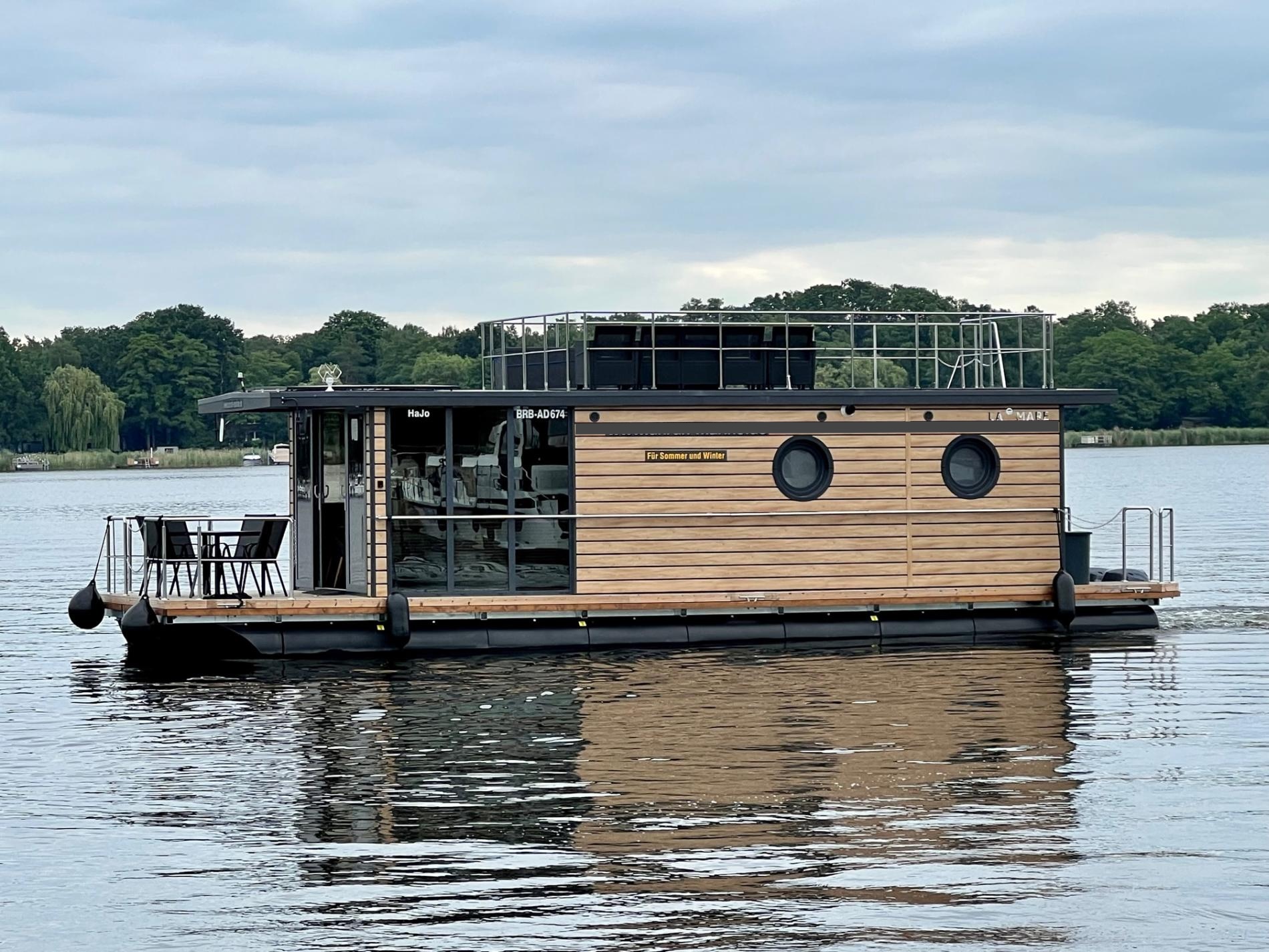 The 80 cm wide door to the stern gives you access to the outboard engines, gas and electrical box, bathing ladder and the ladder to the spacious roof terrace, which invites you to sunbathe and relax. Inside the boat, wheelchair users can move around freely for the most part thanks to the step-free level, wide interior doors and open spaces. The roof terrace is not accessible on wheels. People with reduced mobility need assistance to steer the boat. Please note that "HaJo" is a pet-free boat. The innovative concept provides you with comfort and independence thanks to solar energy and an inverter. The hot water heating in combination with the insulation gives you the opportunity for a great holiday even in autumn and winter.