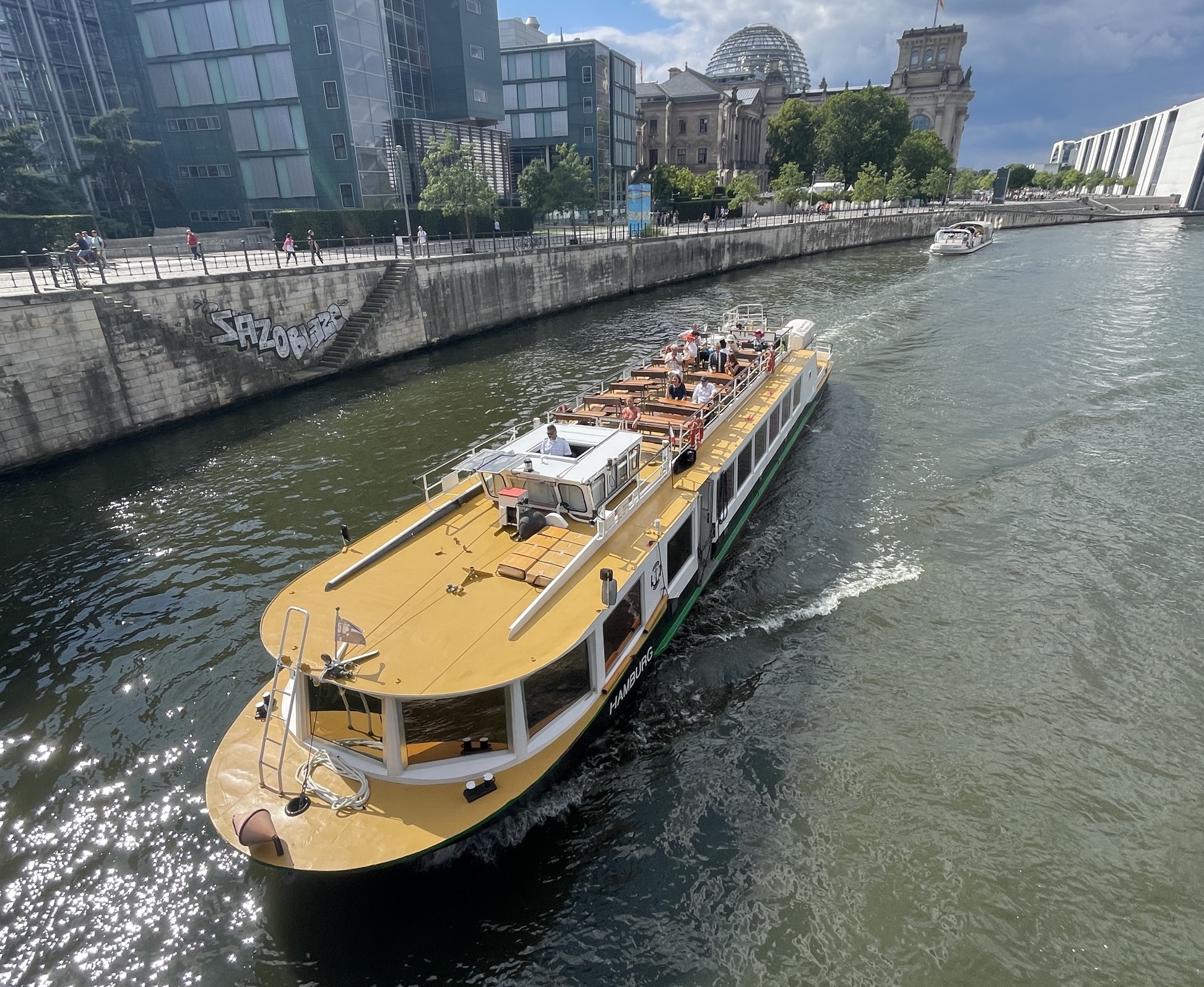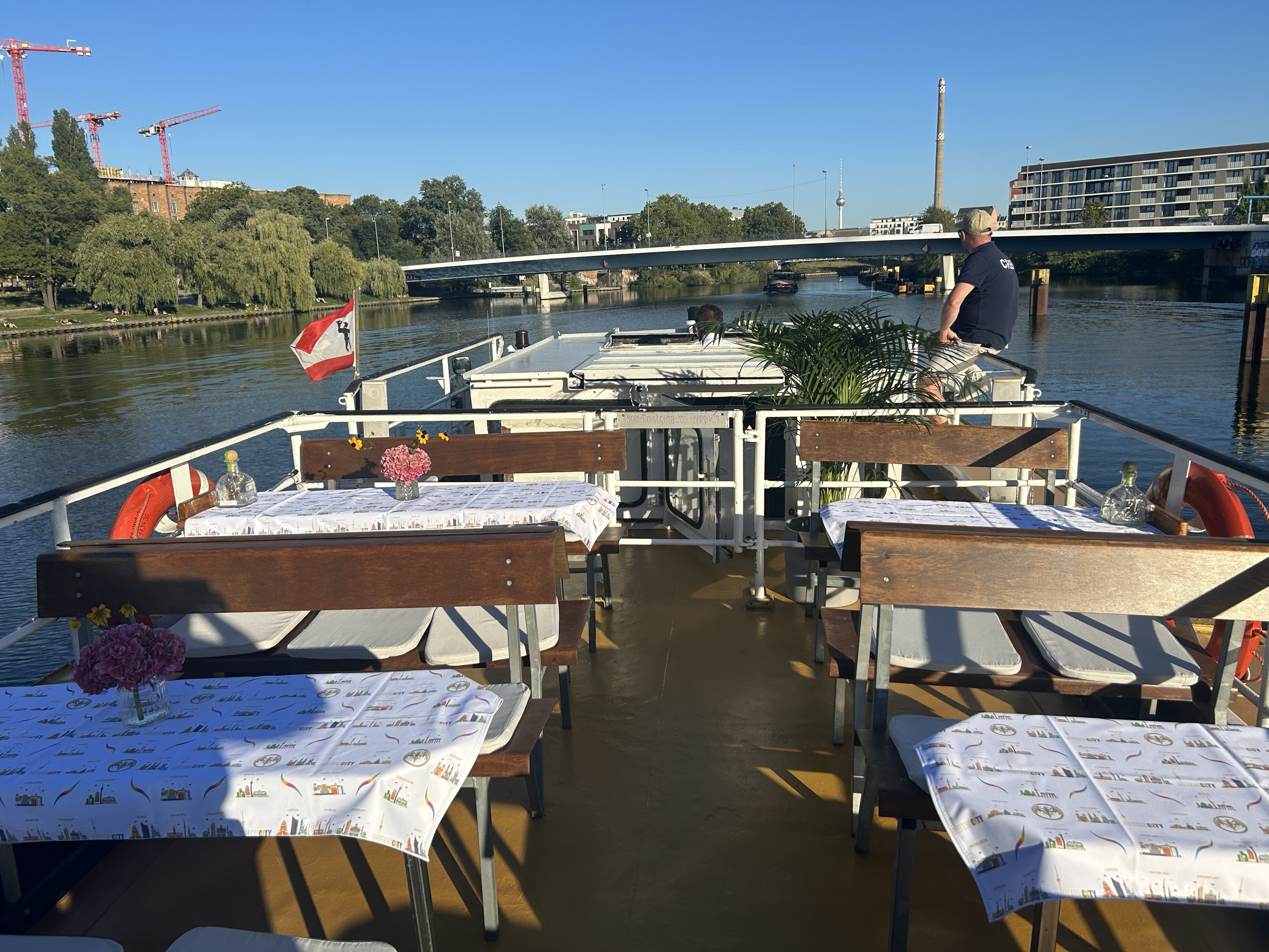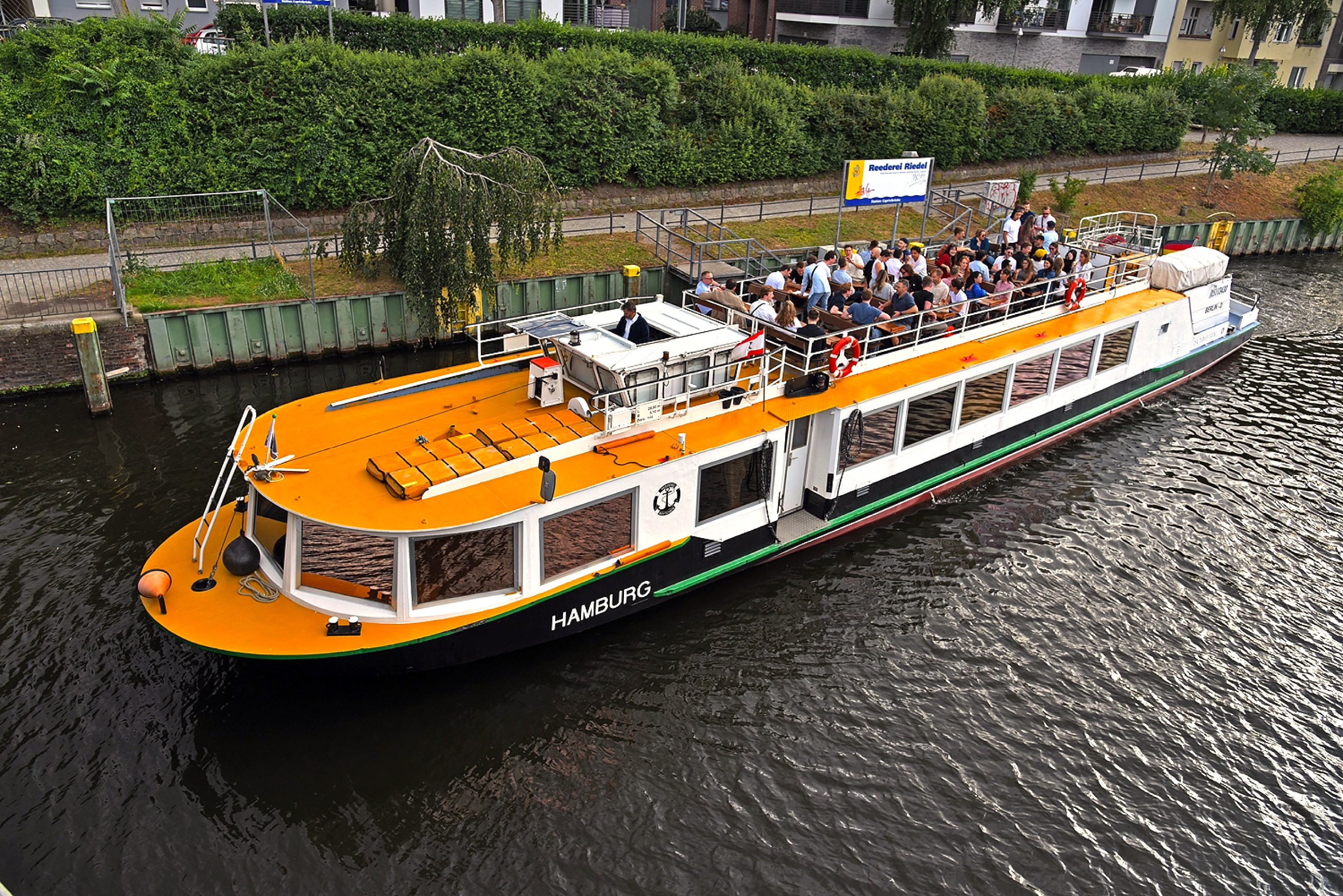Come aboard the MS Hamburg and enjoy an unforgettable boat trip on the modern passenger ship unforgettable boat trip through Berlin's city center or into the countryside. With the spacious salon and the large sun deck, the Hamburg offers an ideal location for events of all kinds. No matter if company party, wedding, birthday or team event. We recommend the ship for group sizes of 70-90 people.