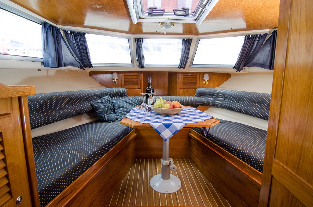 Houseboat Moin is a very well equipped Norwegian family boat. It offers space for two adults or a four-member family.
