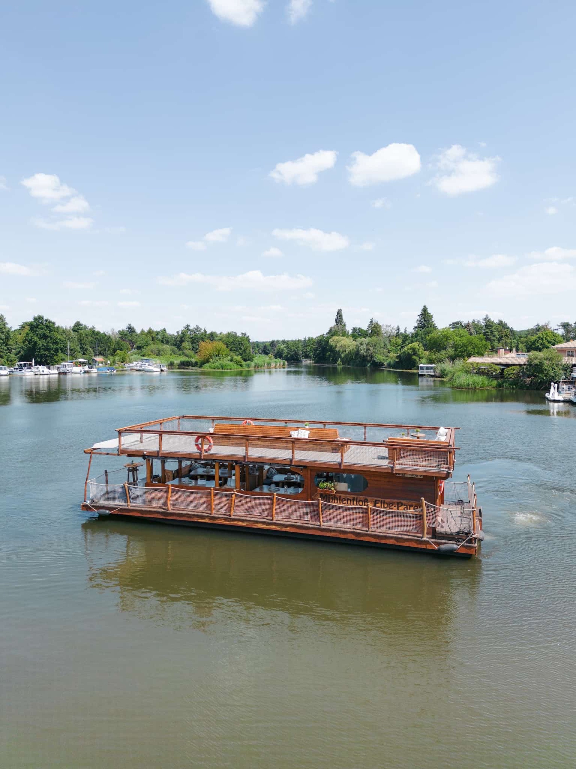 Explore the Spree with maritime flair and enjoy the unique charm of this floating event location. The open structure brings you close to the water and creates a light, summery atmosphere.