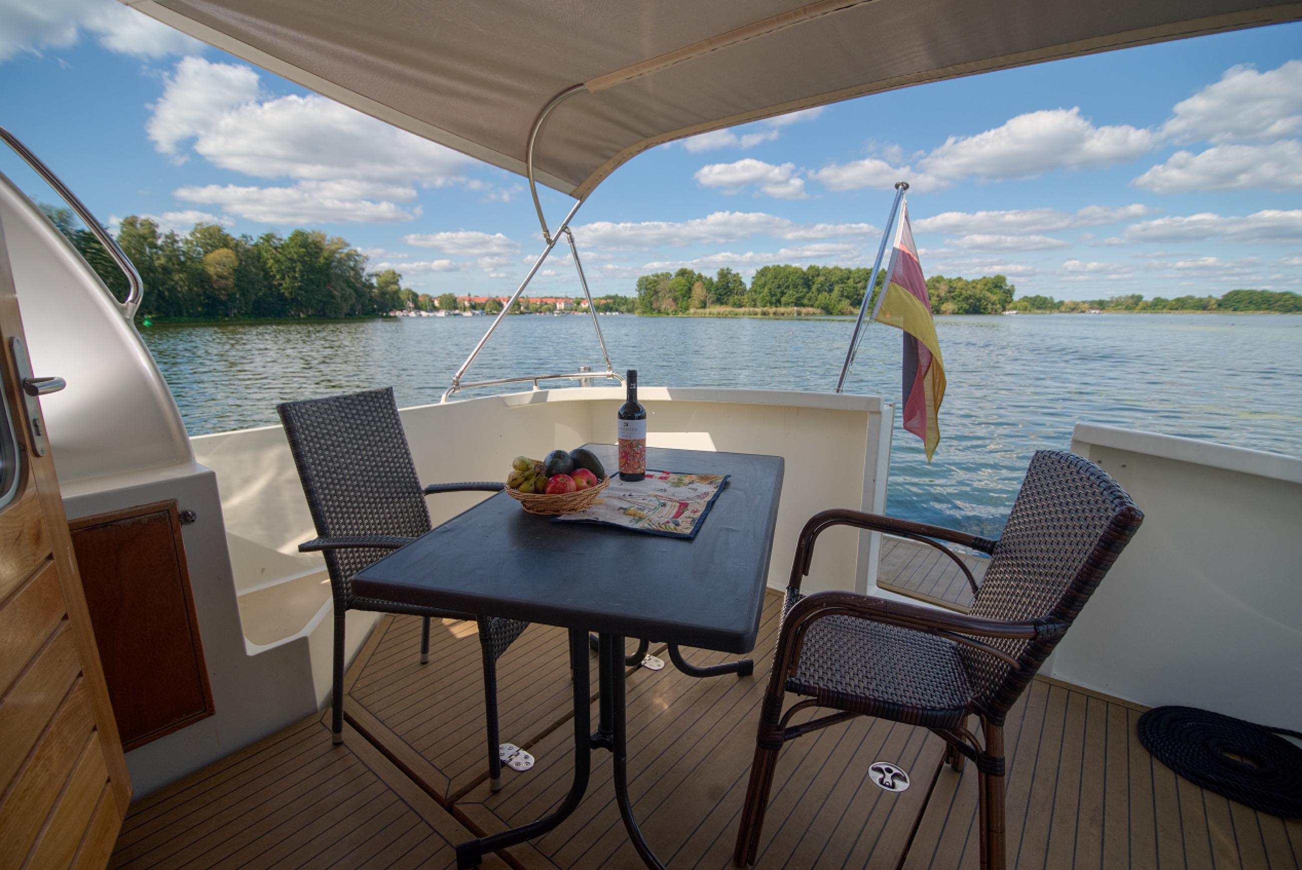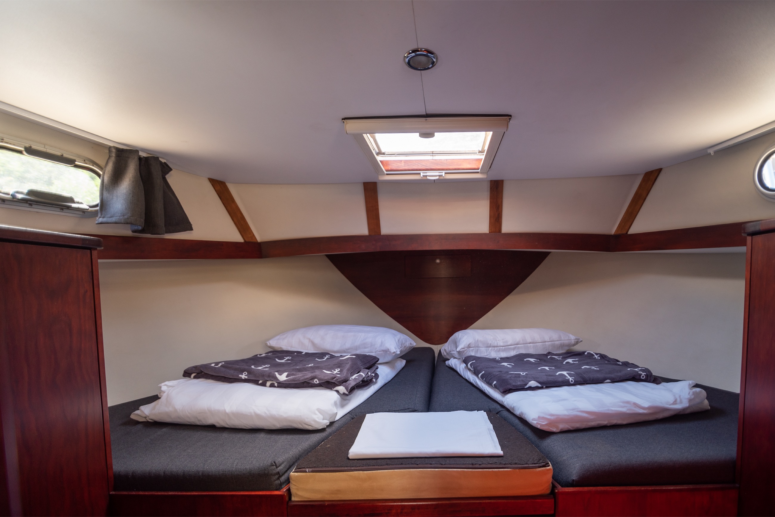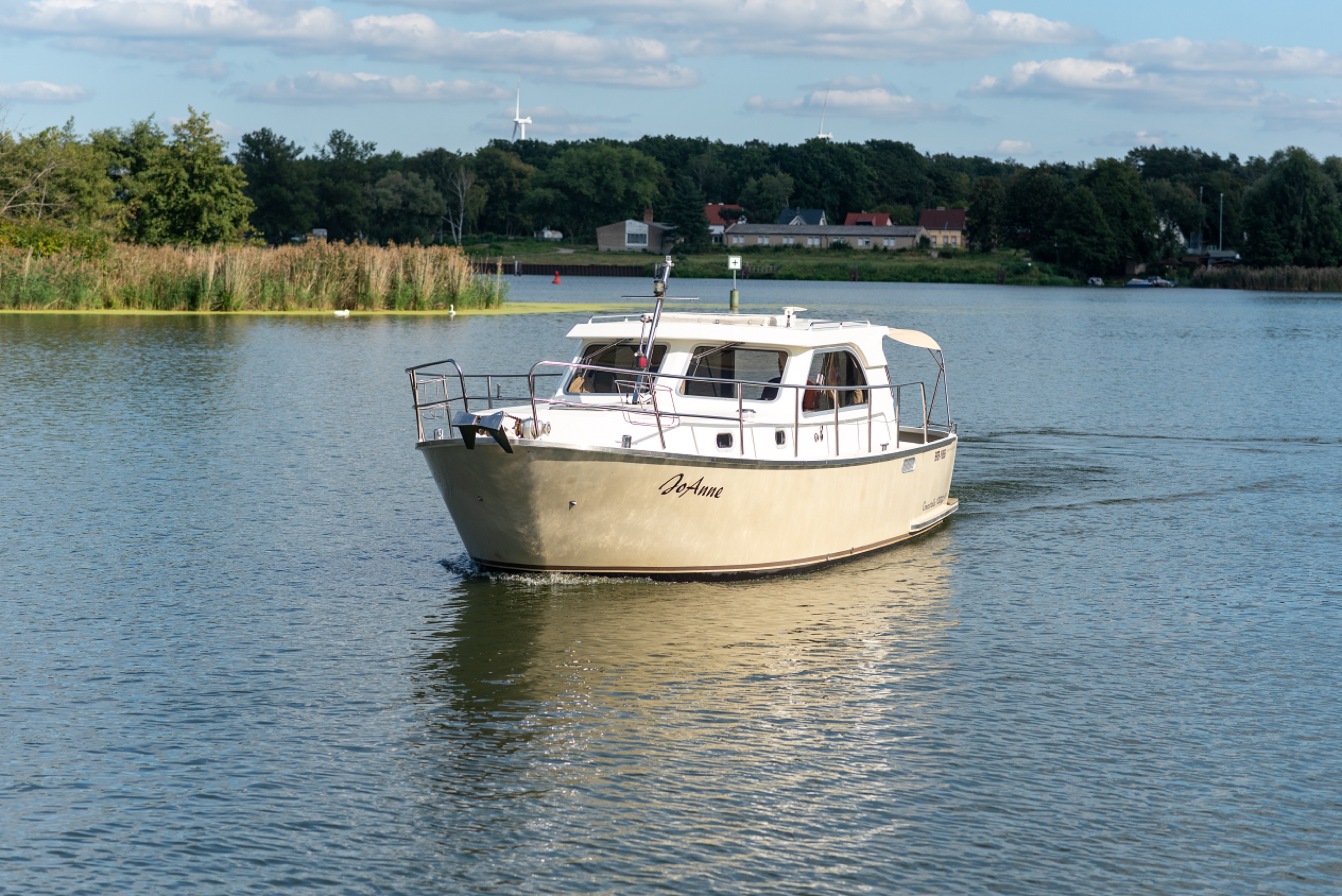 The JoAnne is comfortably equipped and ideally suited for 2 people. The boat is accessible all around. Saloon, outdoor area and bathing platform are on one level. Bow and stern thrusters are available.