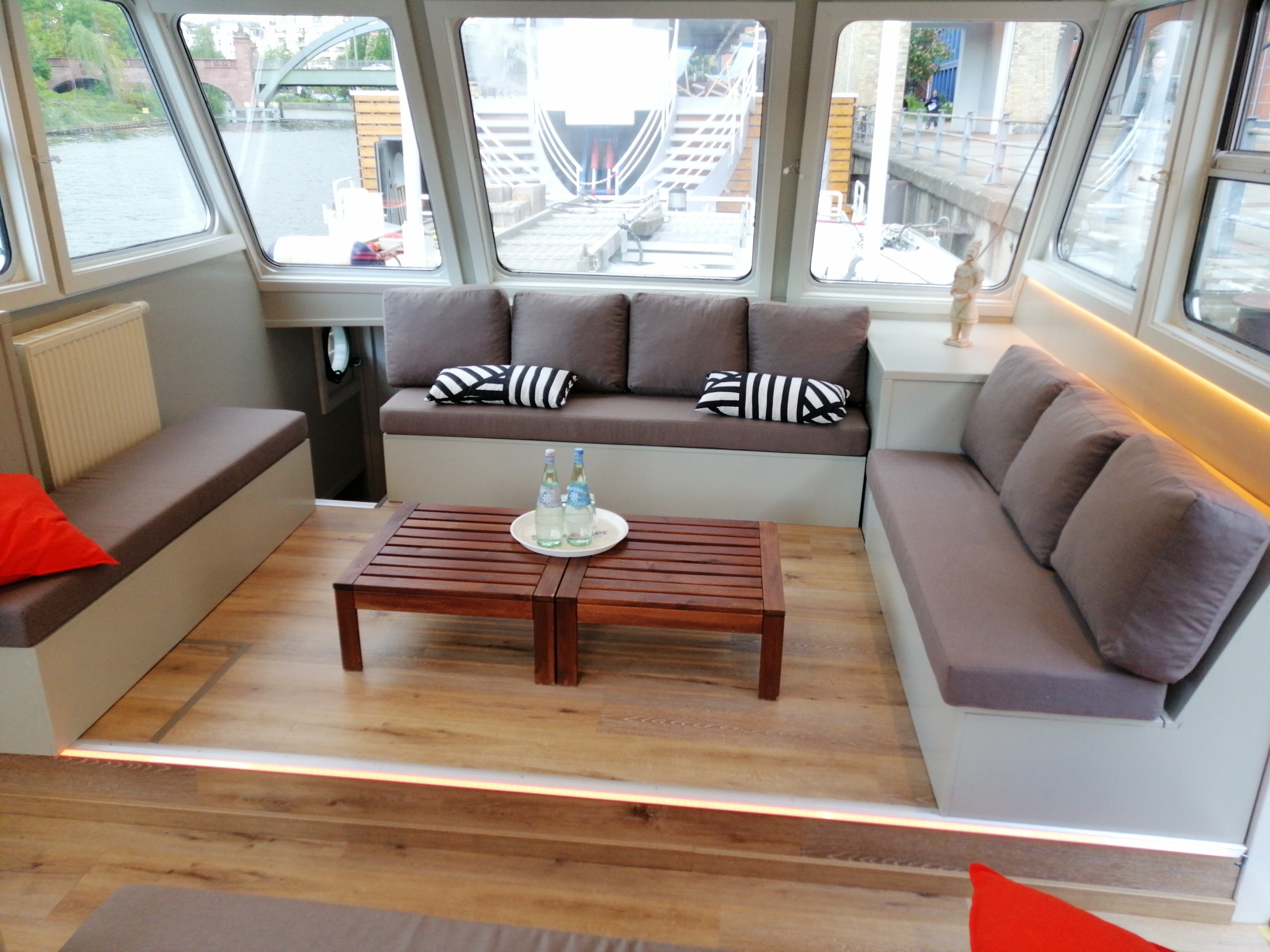 On board there is a spacious saloon, several cabins for overnight stays and a large roof terrace. With a ship length of 28 meters, there is enough space for a variety of events. Multi-day incentives are also possible, as you can stay overnight and live on the ship for a few days.