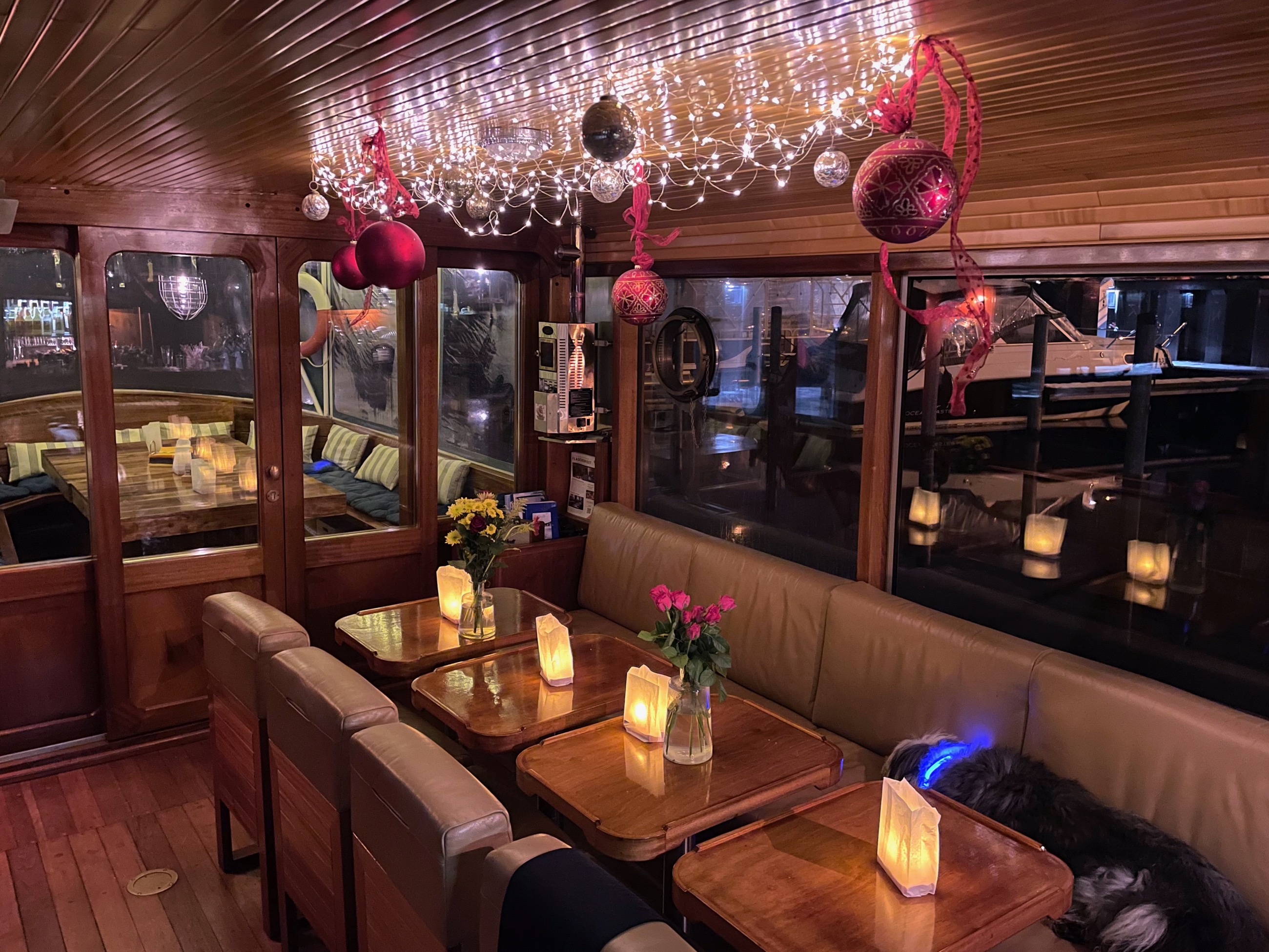 The MS MARPLE can be used at a reduced rate as a location in the harbor (Citymarina) for workshops, movie nights (170x120 cm screen plus virtual surround sound), etc.