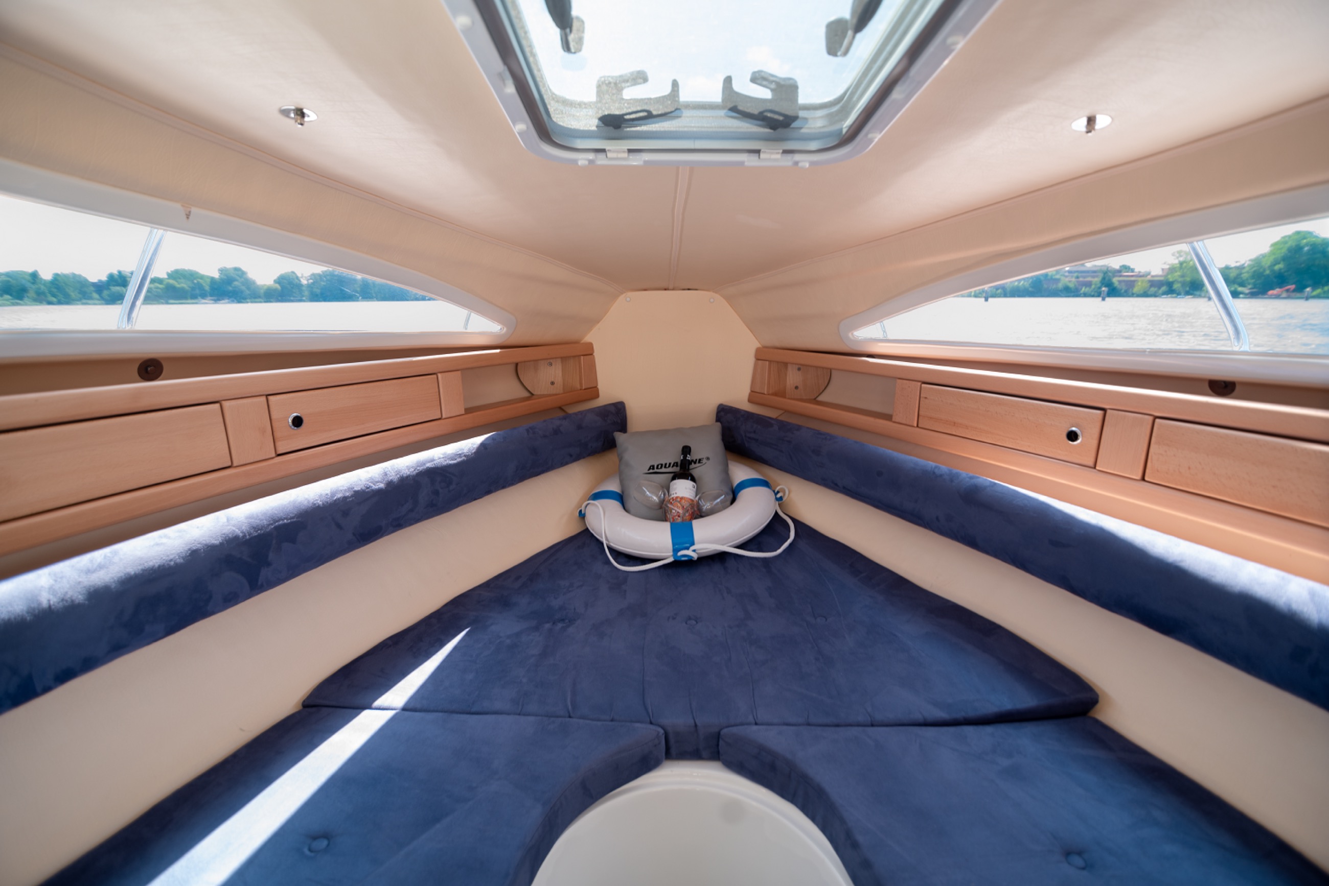 This powerful yacht is moored in Berlin Spandau and is the perfect choice for day trips to Lake Tegel or the Havel.