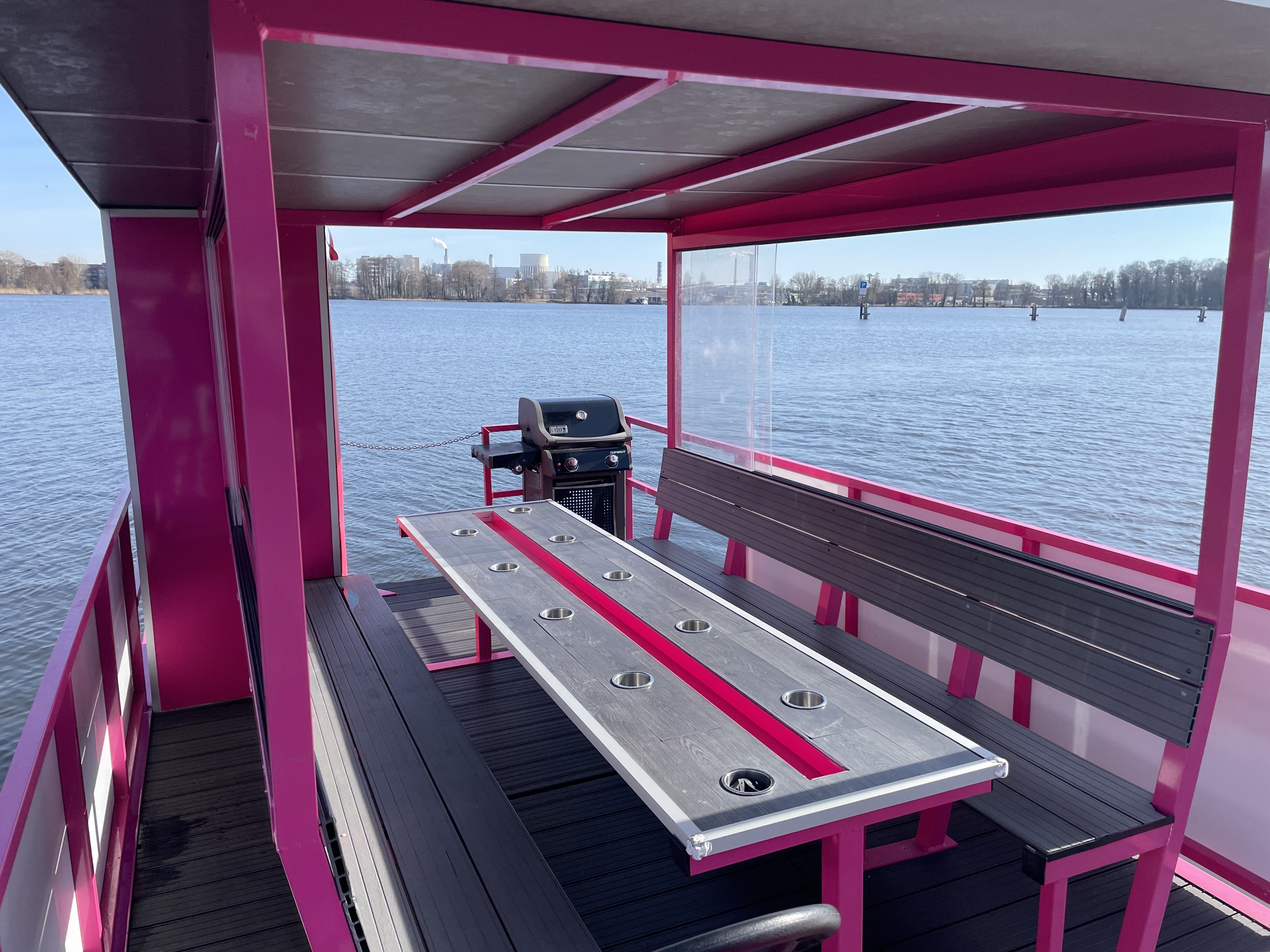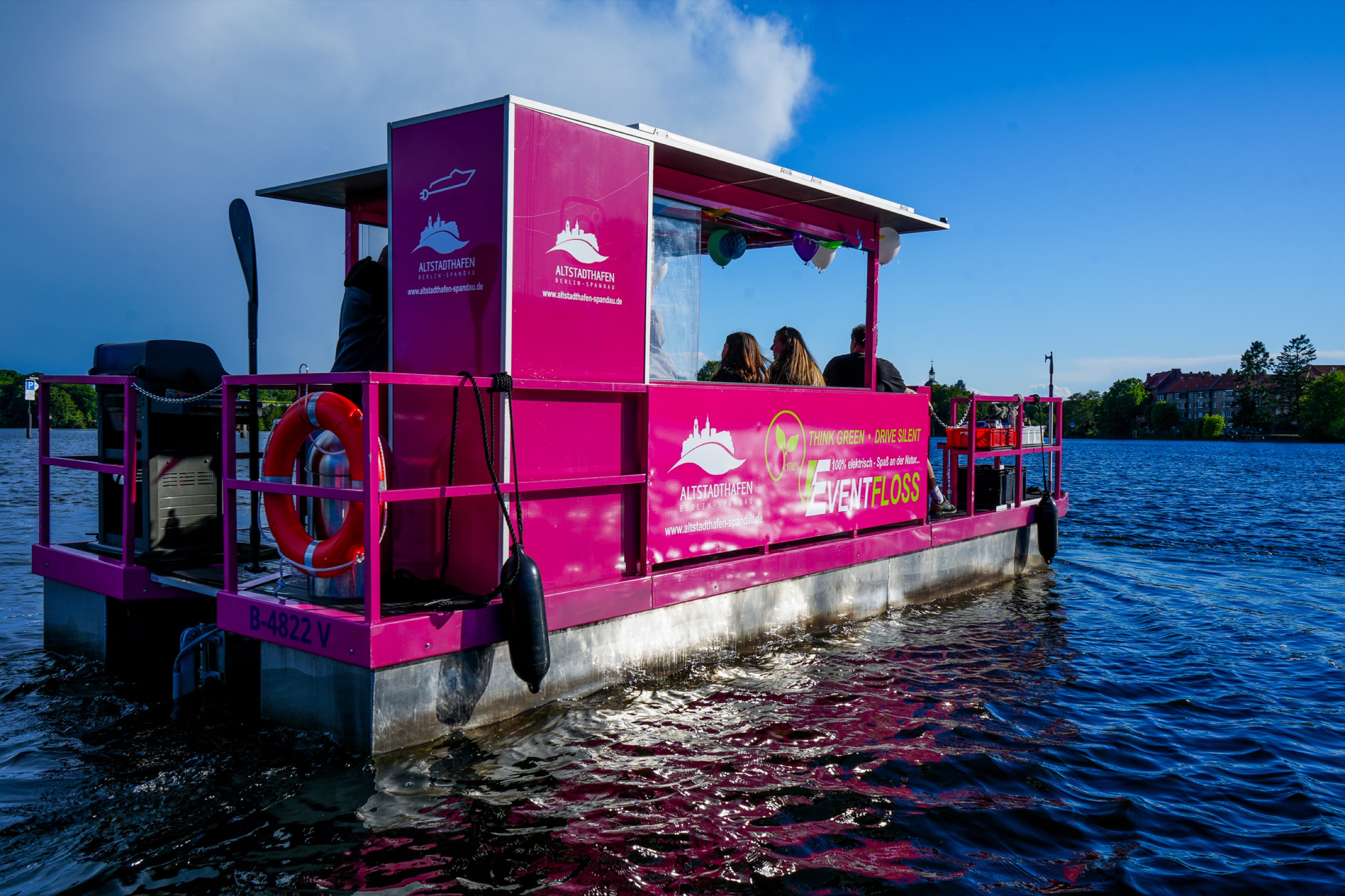 The raft is docked in Berlin Spandau and is ideal for swimming trips to Lake Tegel (known for Berlin’s best water quality).