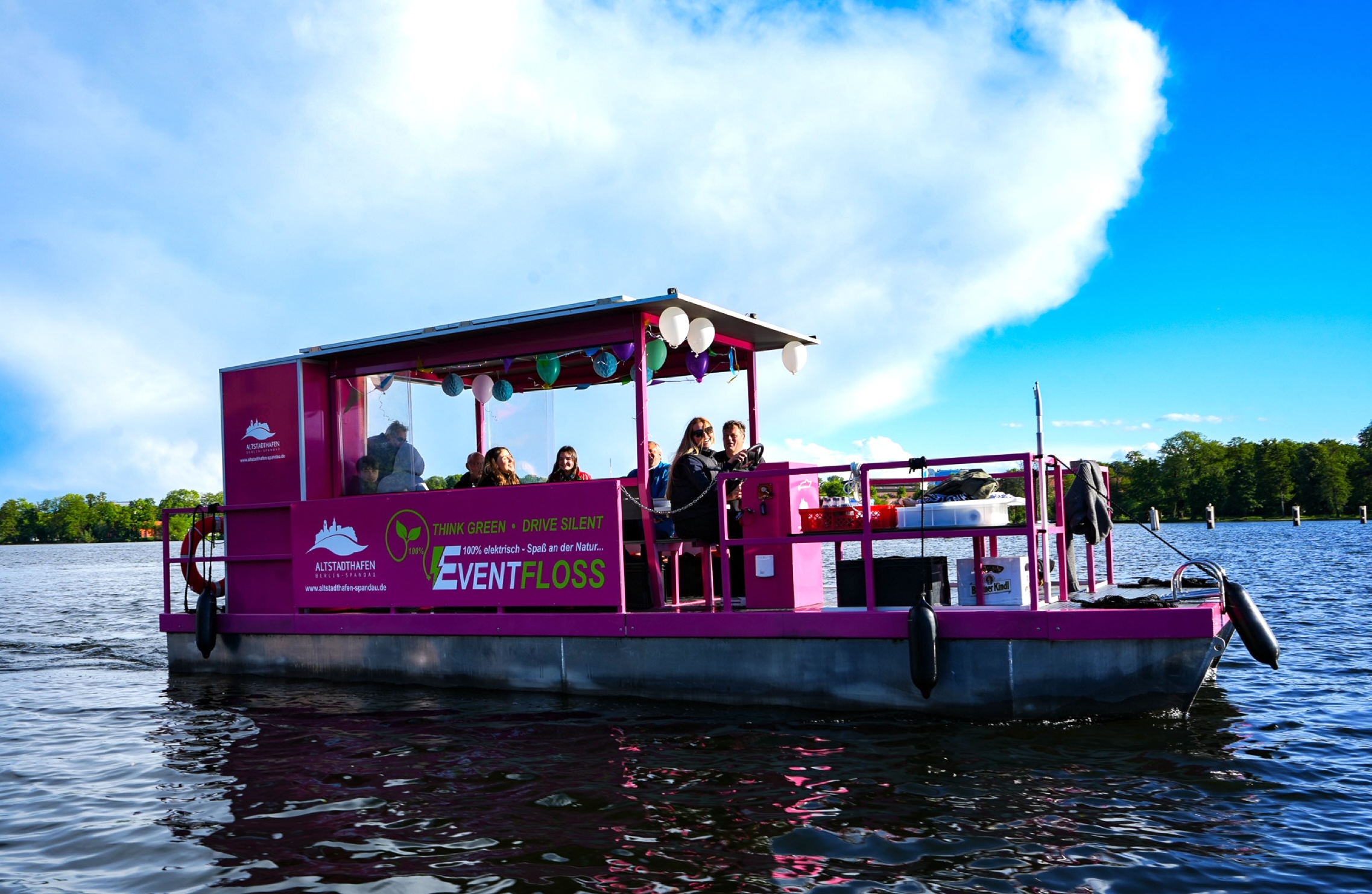 Whether it’s a birthday, bachelor(ette) party, or just a special day with friends, the Pink Lady is the perfect electric-powered raft for 4 to 15 people.