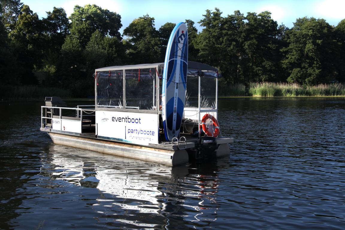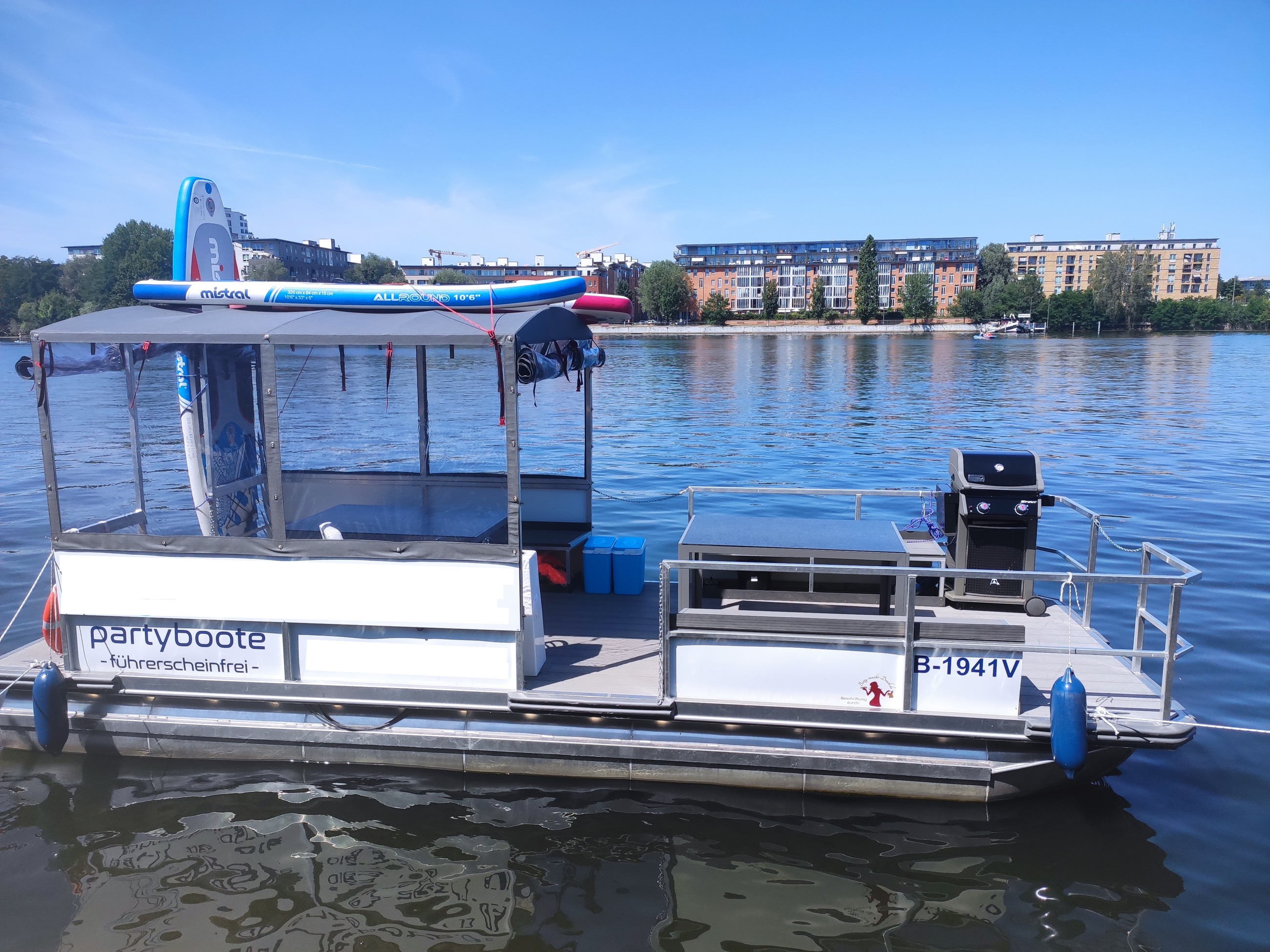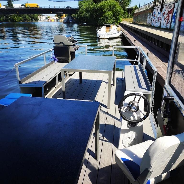 Rent a barbecue raft in Berlin Tegel and sail across the lake with 12 people. The handling is quite simple and easy to learn. The raft has a weatherproof cabin and a Weber gas grill. Therefore nothing stands in the way of your raft trip even in the rain.