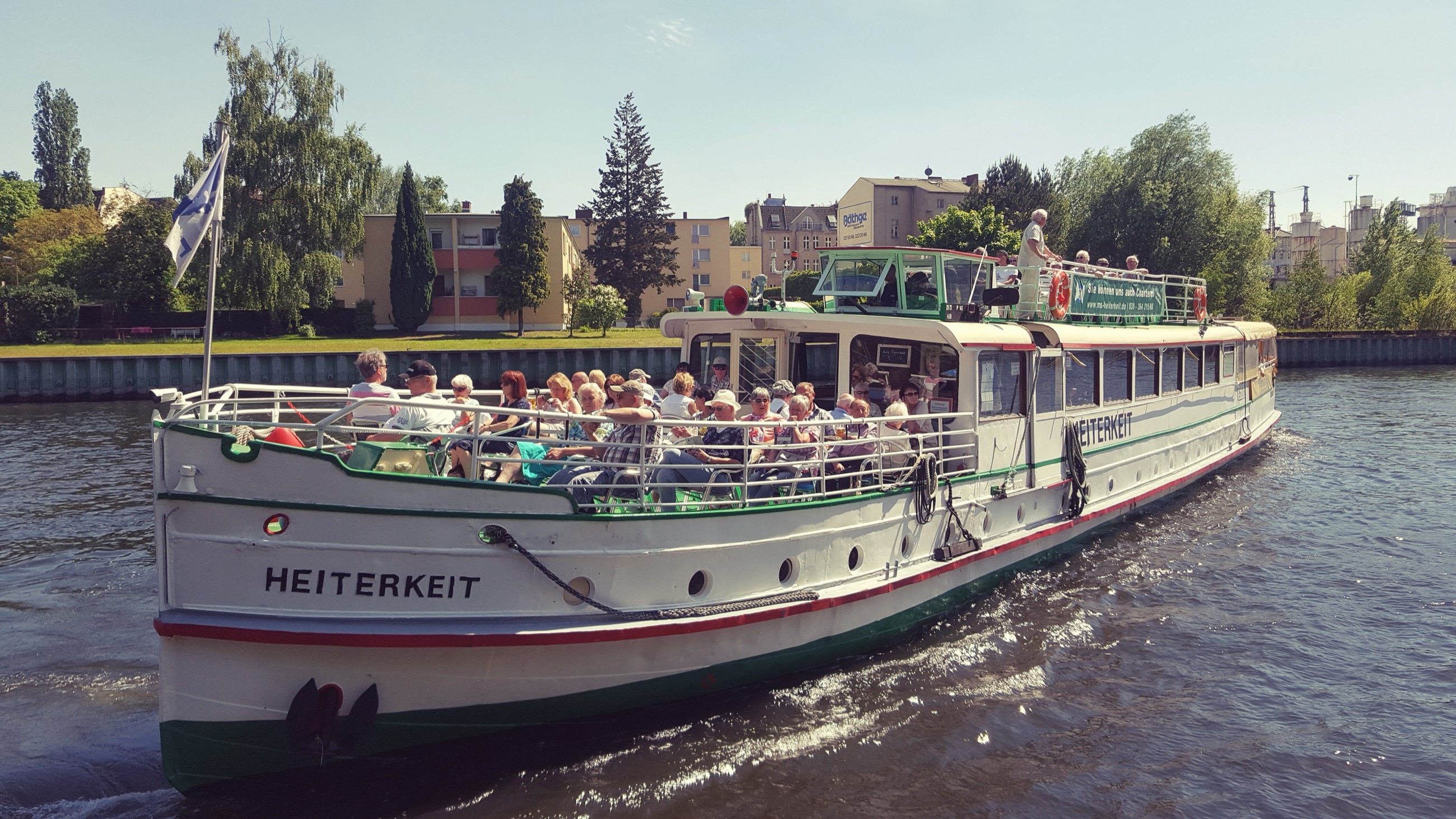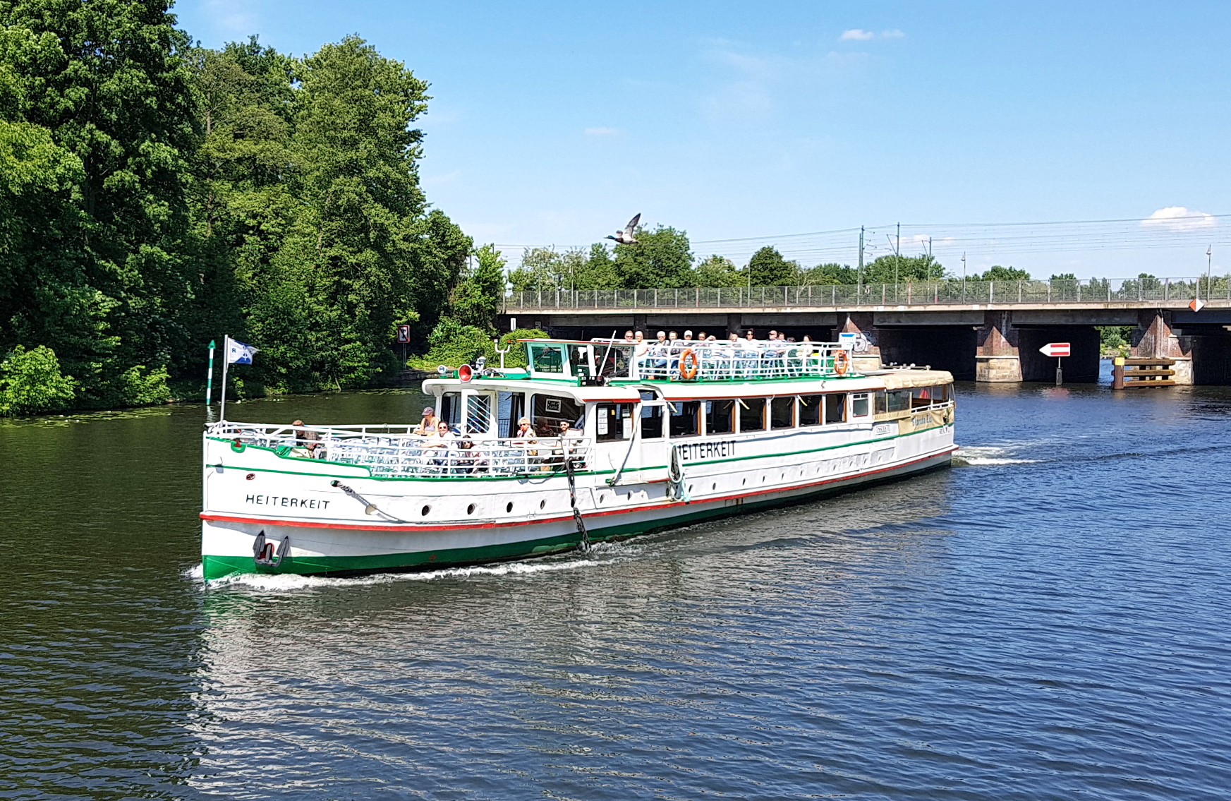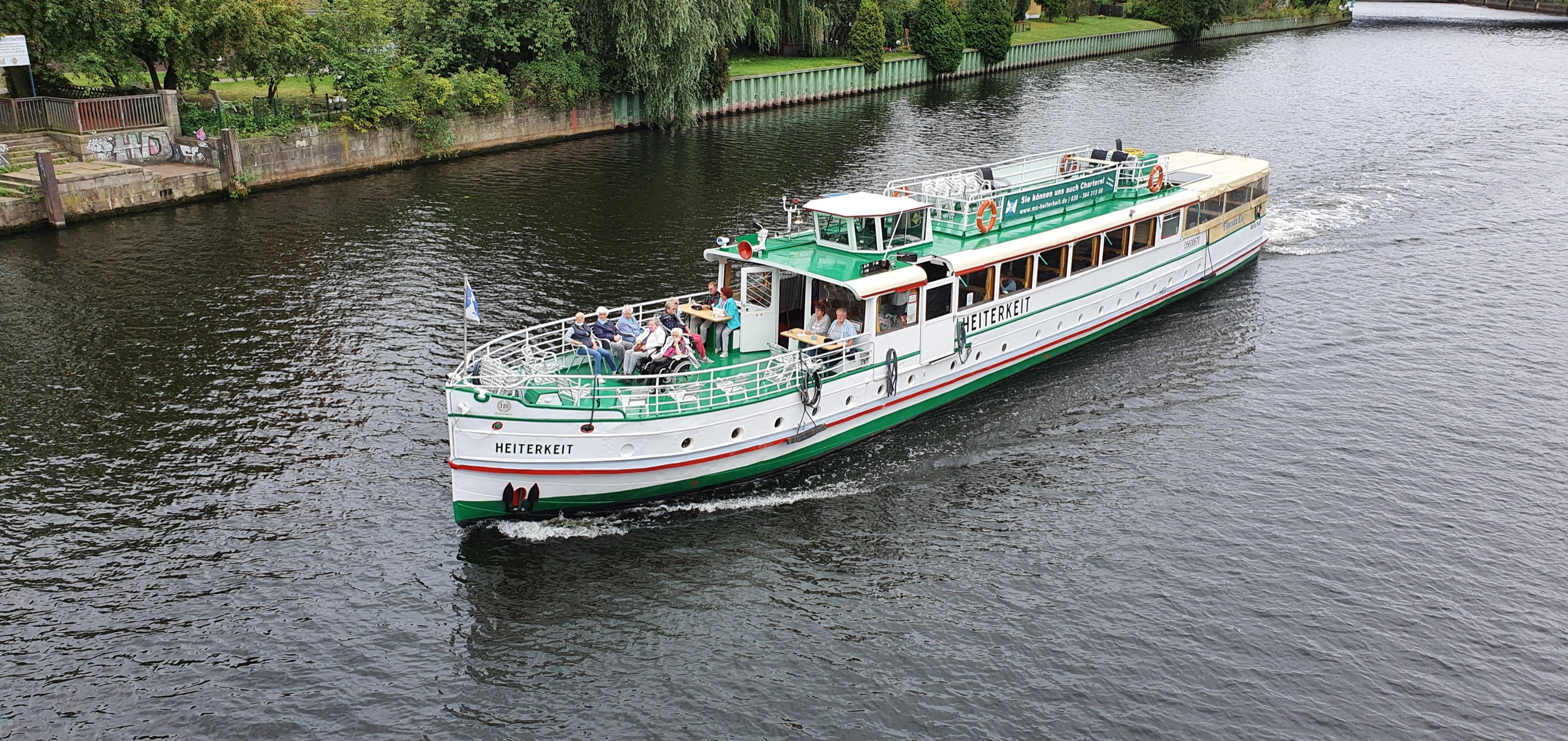 The ship MS Heiterkeit was built in 1909 under the name "Karl Wilhelm" as a steam tugboat. Nowadays the ship belongs to one of Berlins favorite passenger and party ships.