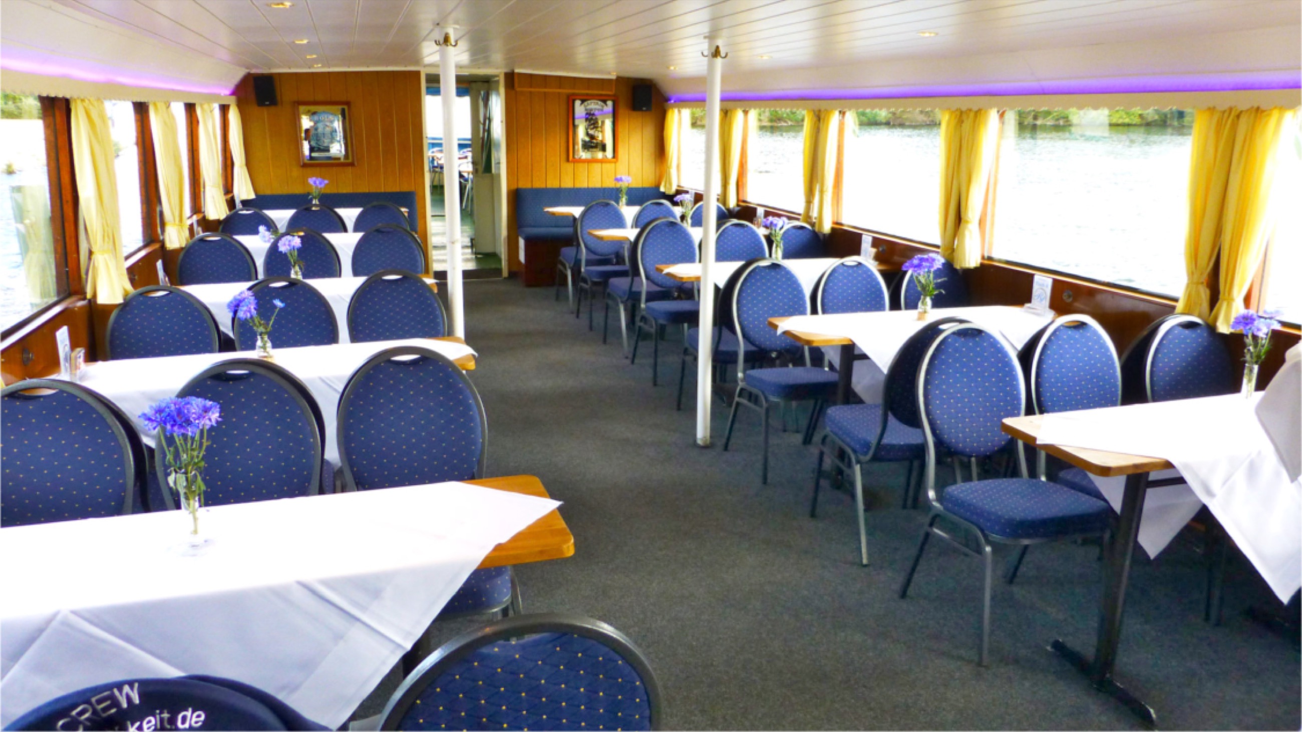 We recommend to book the ship for parties with up to 90 people. This will leave plenty of room for a buffet and a dance floor.
