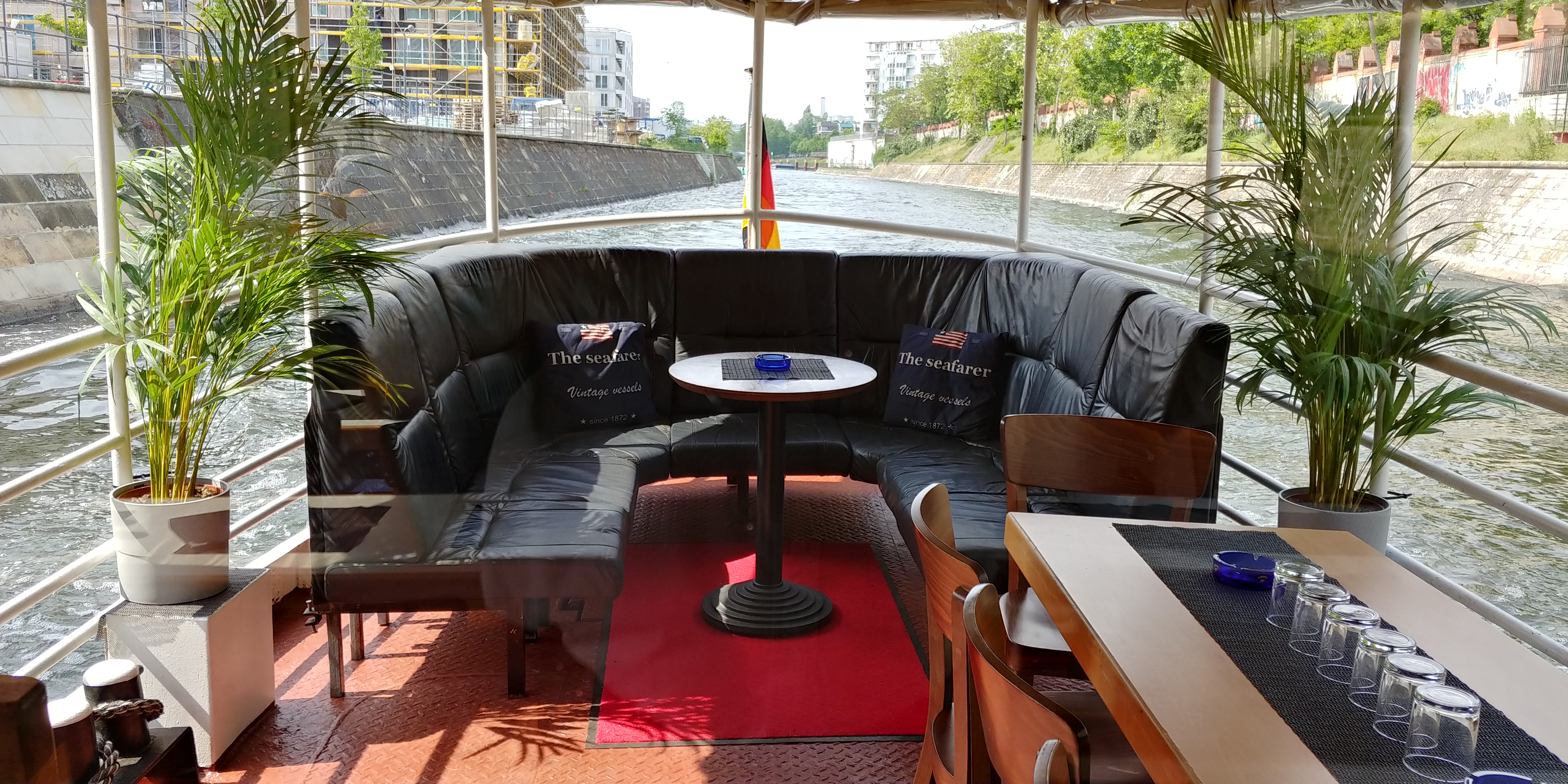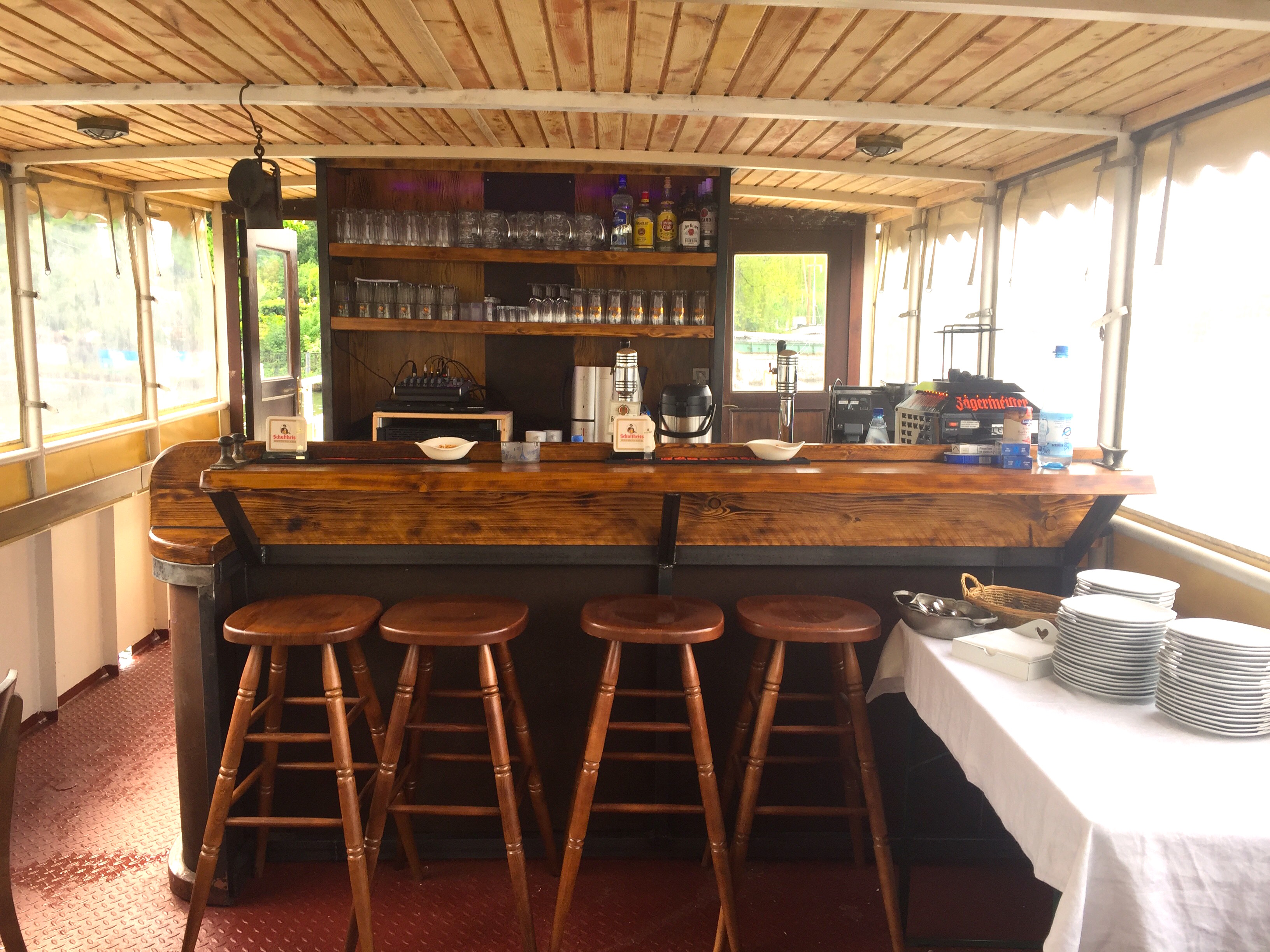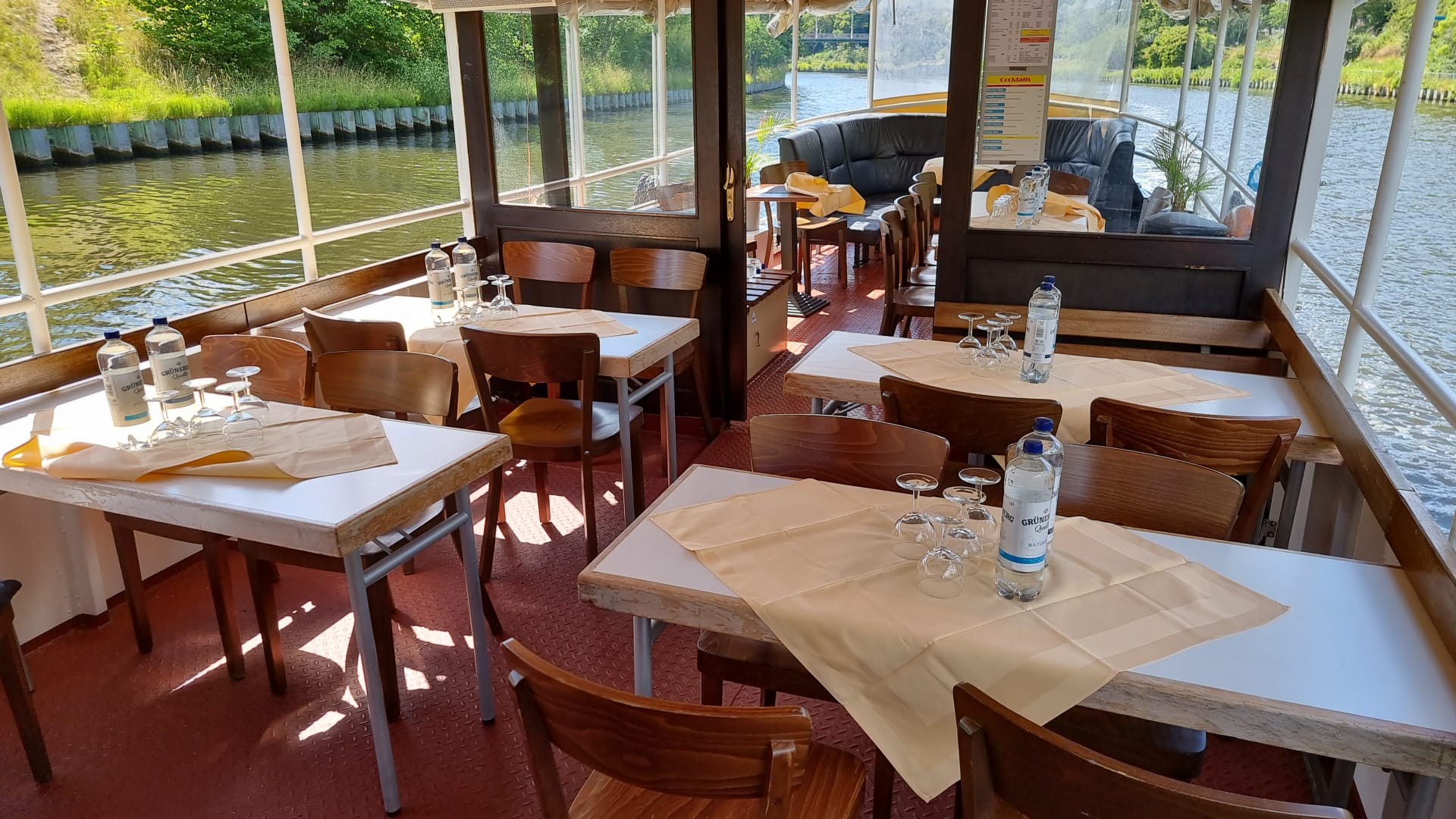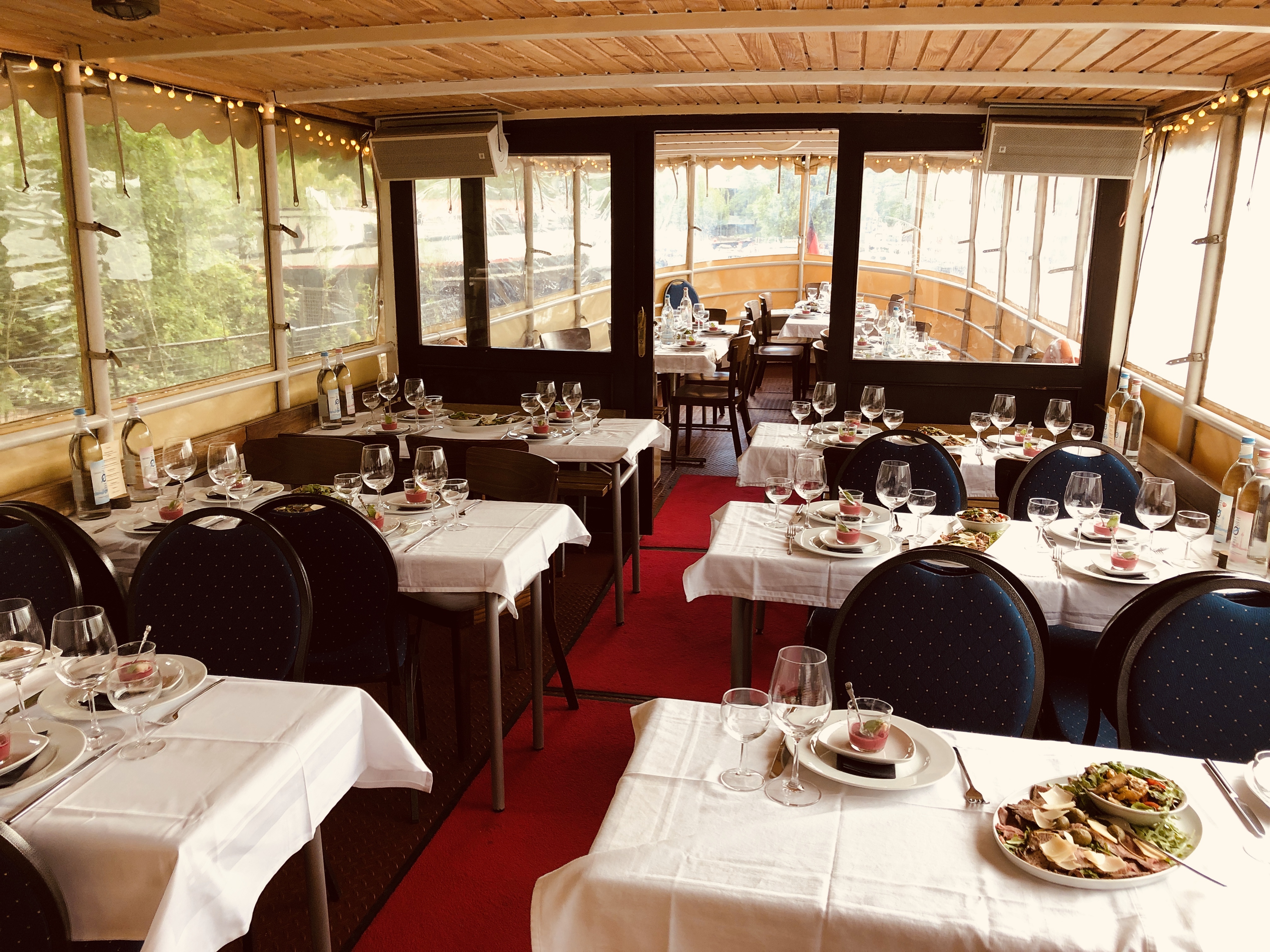 The salon and the stern offer plenty of room to sit down comfortably. There is a big outdoor area at the bow of the ship and the both sides of the salon can be opened up in the summer. A heating system guarantees cosy temperatures in the winter.