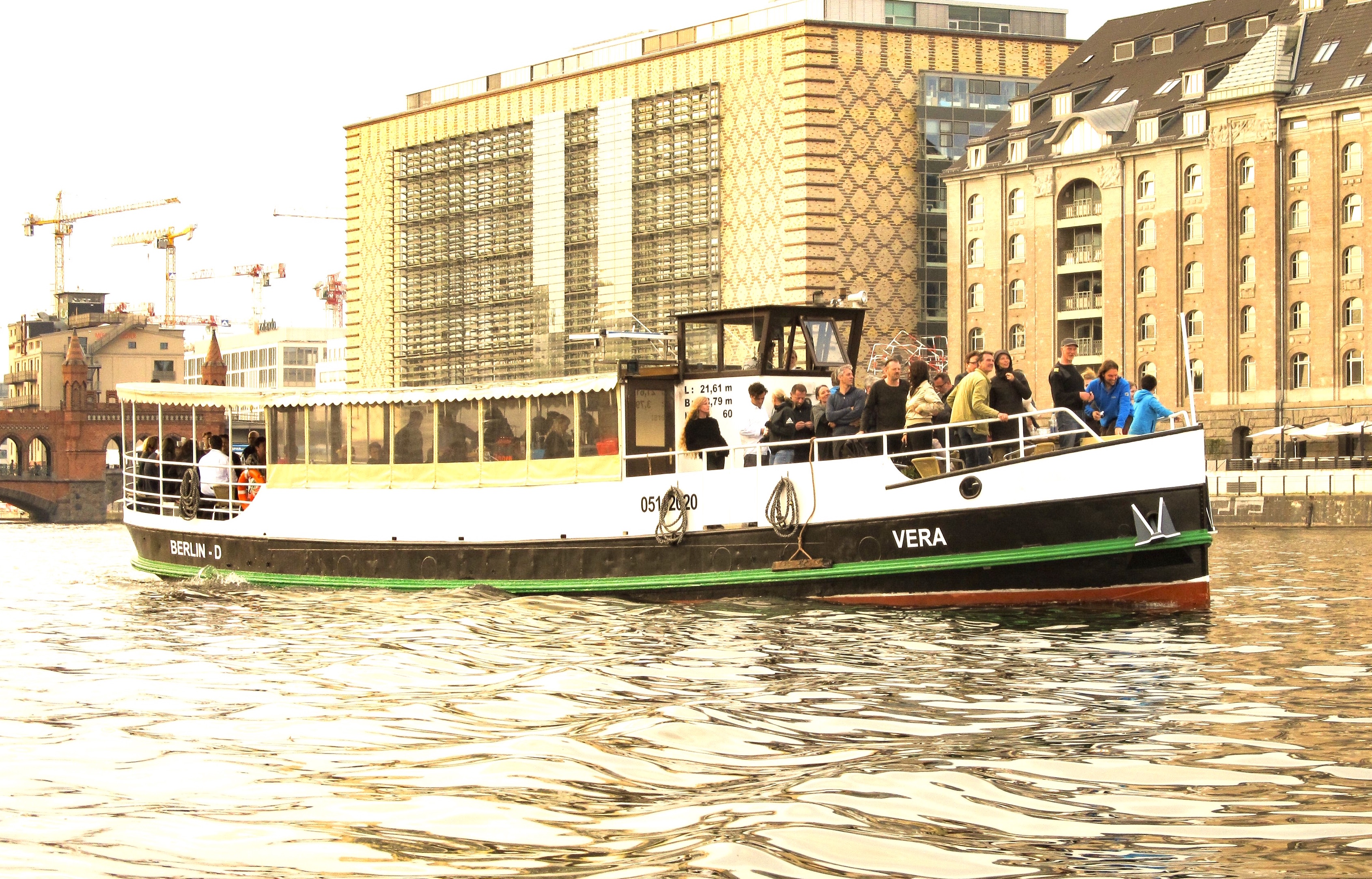 3 hours boat tour: Start at Western Harbour -> Berlin Spandau Shipping Canal -> North Harbour -> Central station -> Reichstag -> Palace of Tears -> Bodemuseum -> Monbijoupark -> Berlin Cathedral -> Humboldt Forum -> Nikolaiviertel -> Mühlendammschleuse -> back to Central station and then -> Chancellery -> House of World Cultures -> Bellevue Castle -> Hansa Quarter -> Charlottenburg Palace -> end of the tour at Western Harbour