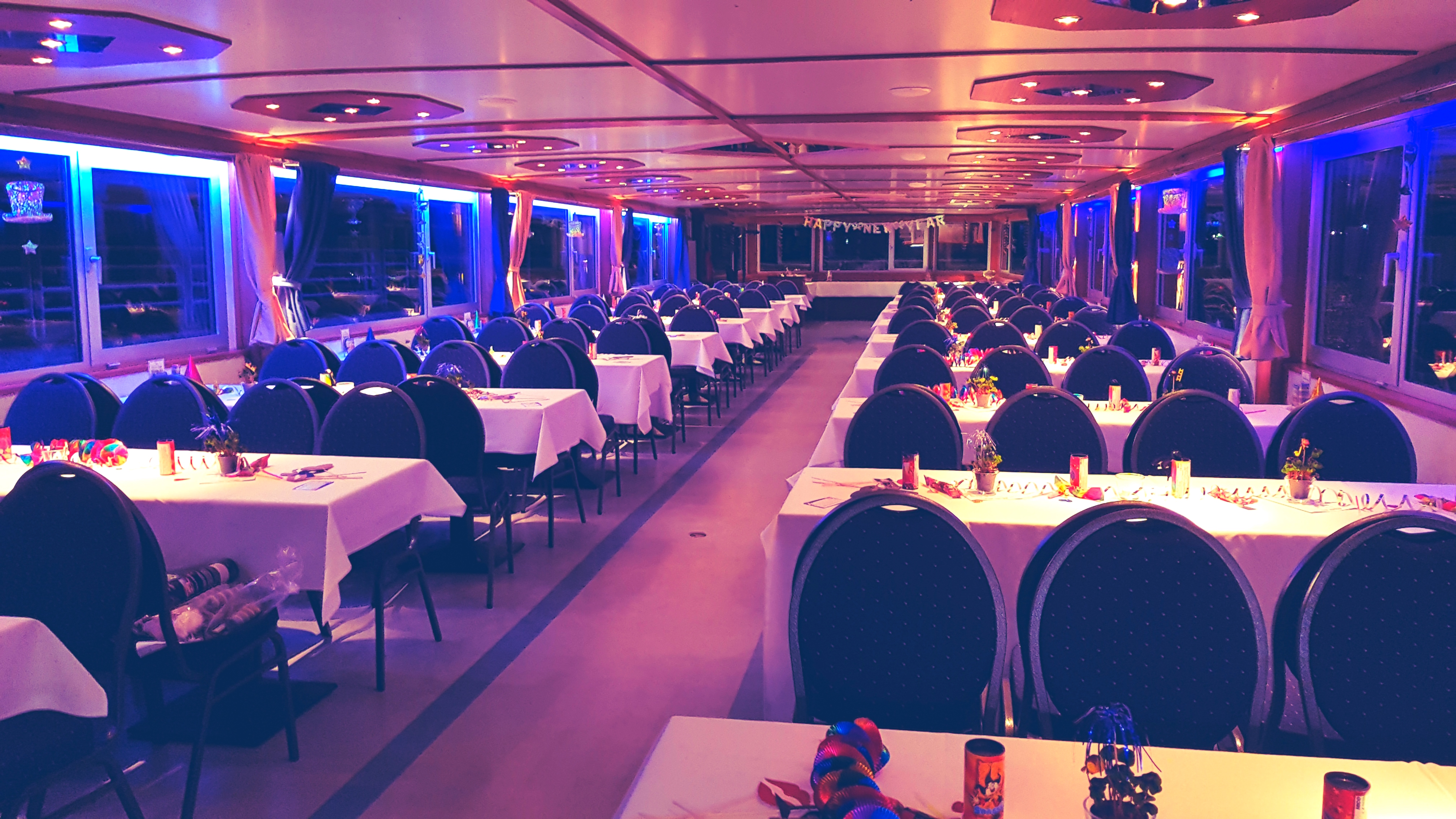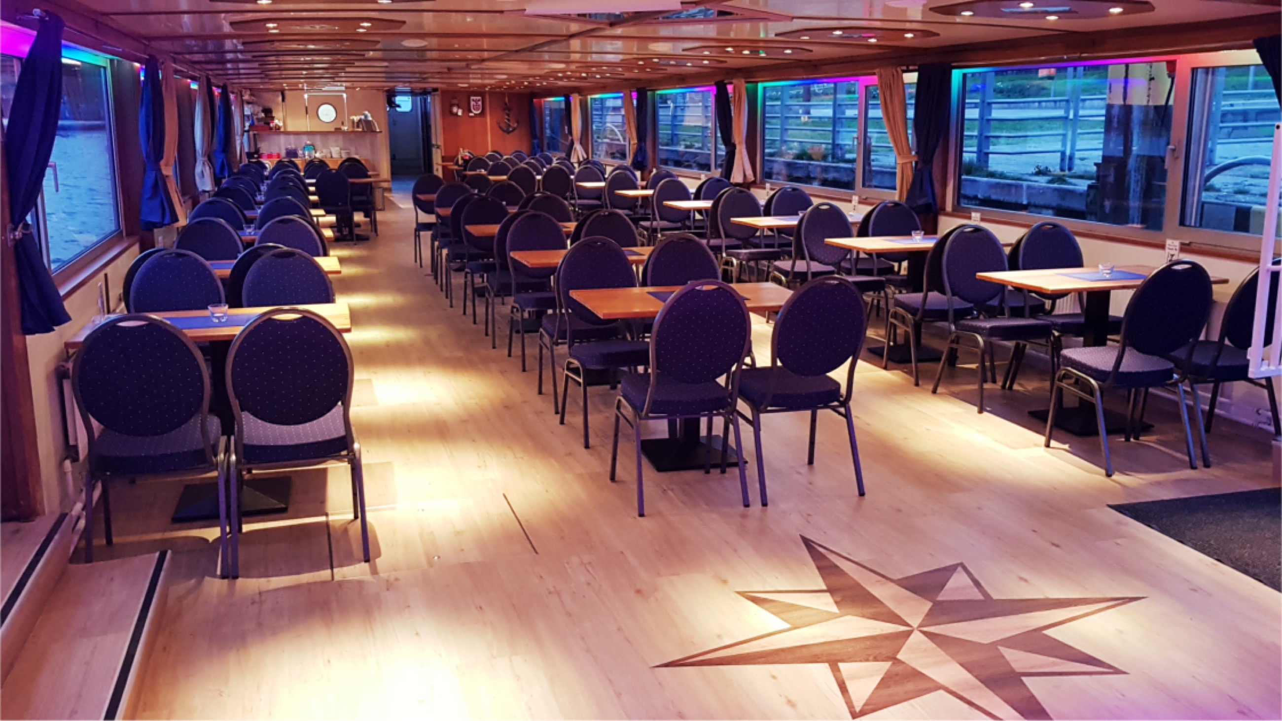 salon (below deck): 152 seats + dance floor + buffet