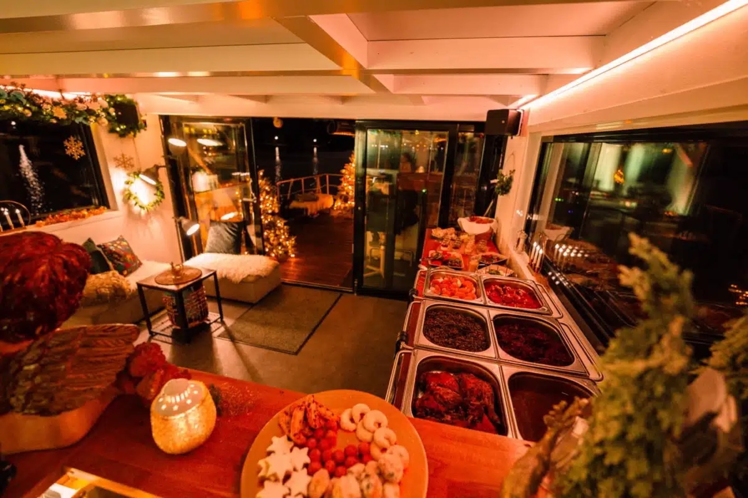 Even in the colder months, the stylish Winter Lounge II invites you to unforgettable moments on Berlin’s waterways. Whether you’re planning a cozy Christmas party, a romantic winter outing, or a small company event – on board you’ll enjoy a warm and welcoming atmosphere with: