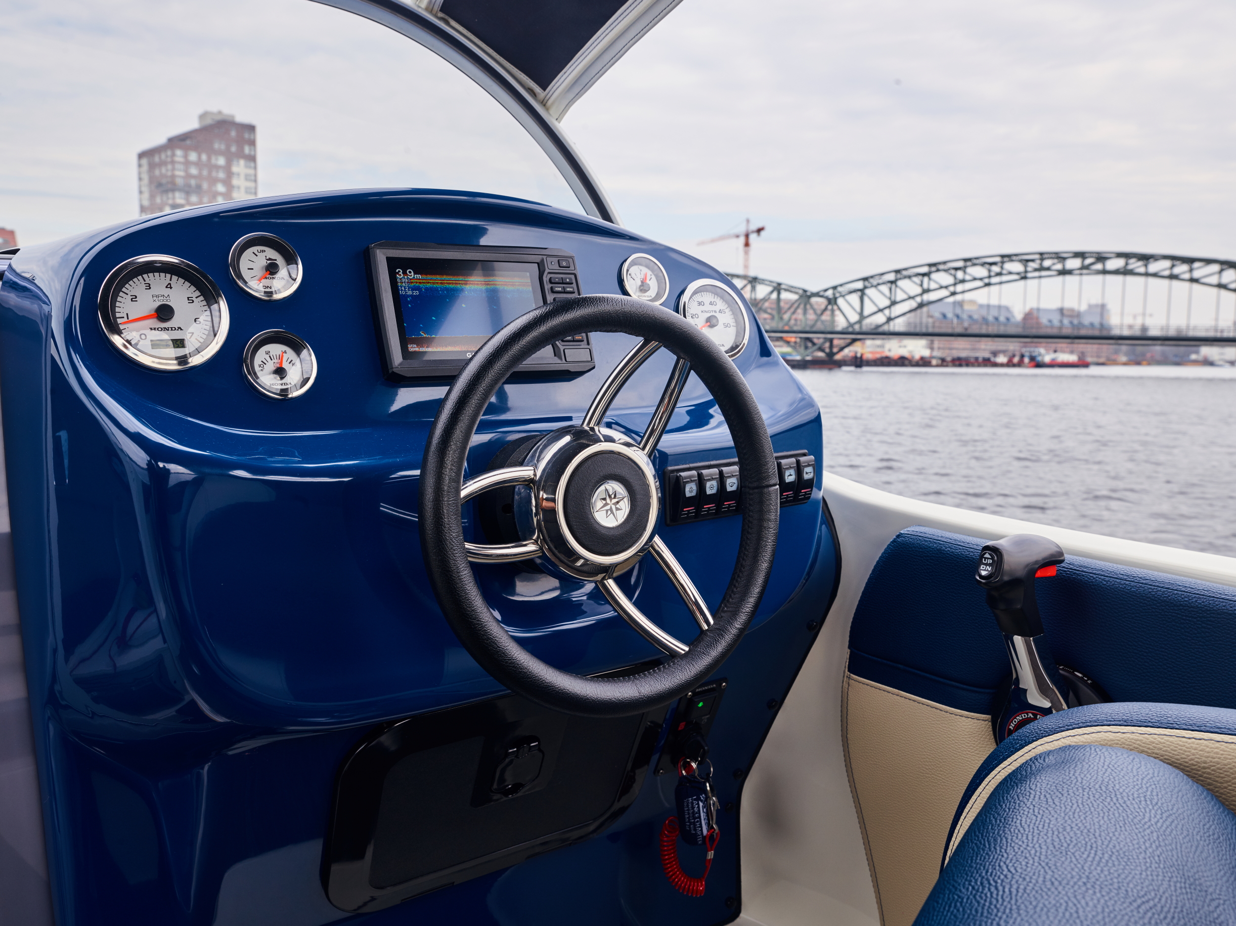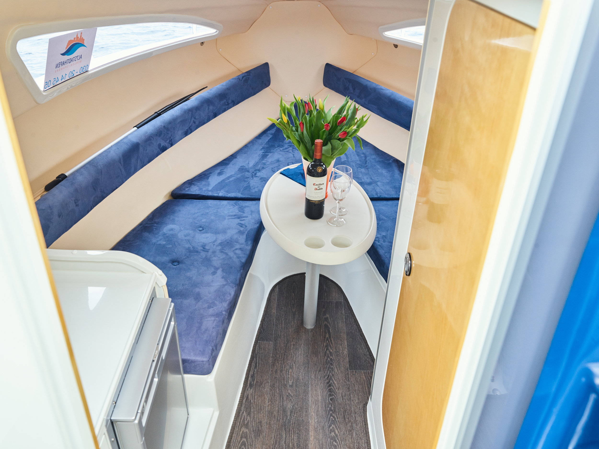 This powerful yacht is moored in Berlin Spandau and is the perfect choice for day trips to Lake Tegel or the Havel.