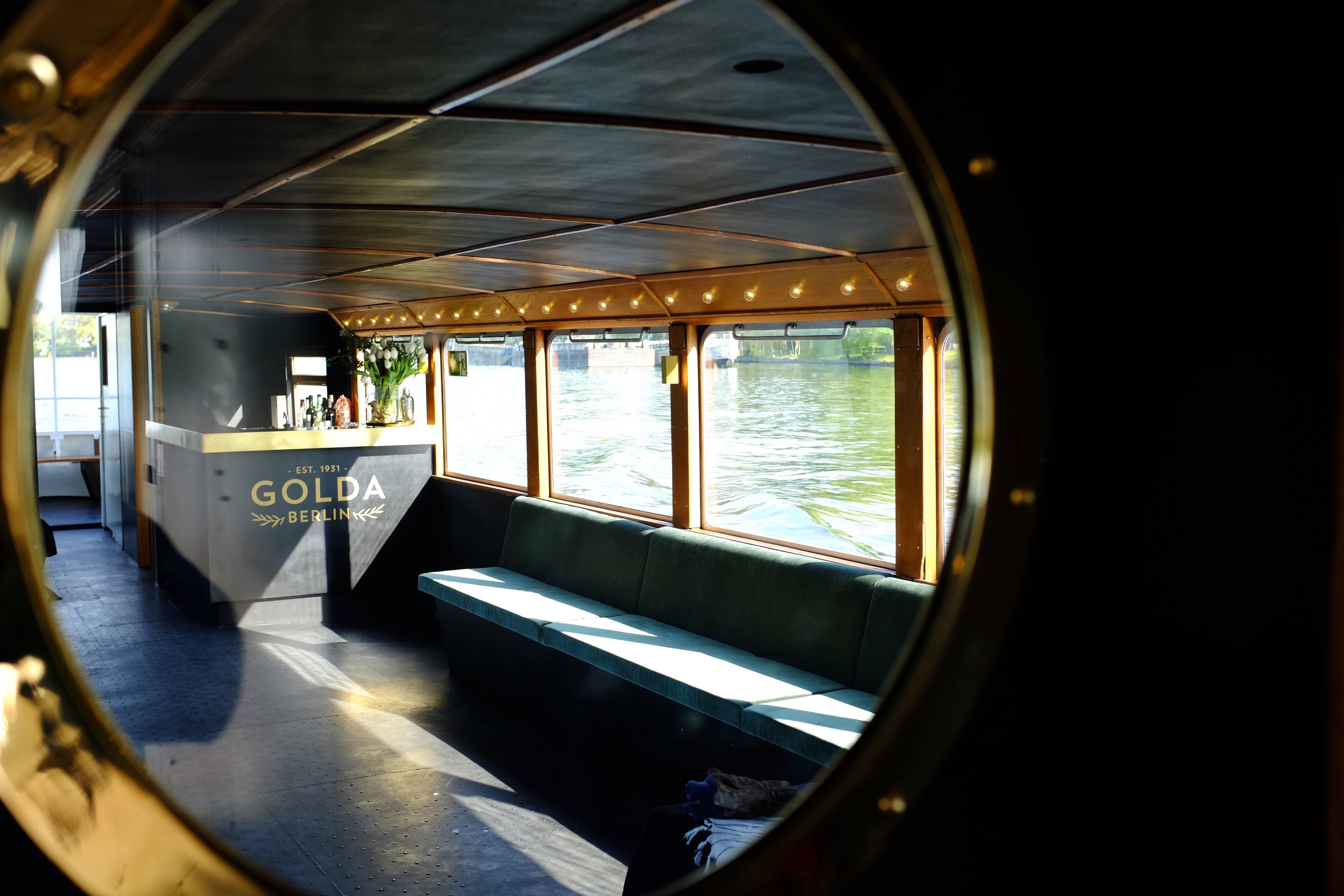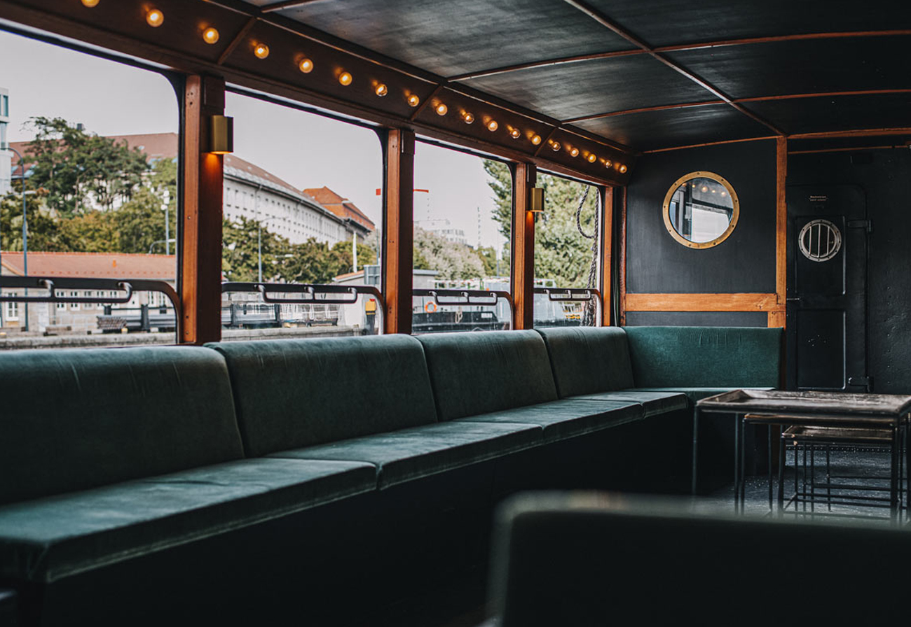 Dieses klassische Berliner Fahrgastschiff aus den Goldenen Zwanziger Jahren versprüht den Charme vergangener Zeiten. Vor- und Achterdeck des Schiffes laden zum Sonnenbaden ein, während der liebevoll restaurierte Salon durch edles Ambiente in Holz, dunkelgrün und gold besticht. Es entsteht der Eindruck einer Cocktailbar aus den wilden 20er Jahren.