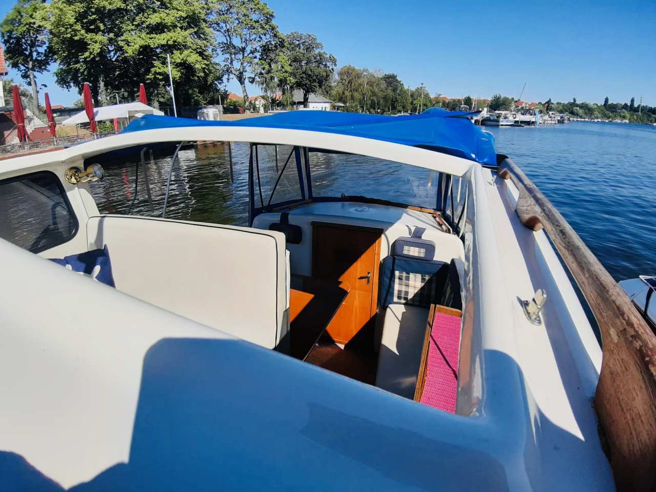 Das Hausboot mit Achterkajüte bietet vier Personen (2 Erwachsene + 2 Kinder oder 3 Erwachsenen) ausreichend Platz um schöne Stunden auf dem Wasser zu verbringen. Vom Hafen in Wildau aus stecht Ihr in See und erkundet die Gewässer Berlin-Brandenburgs.