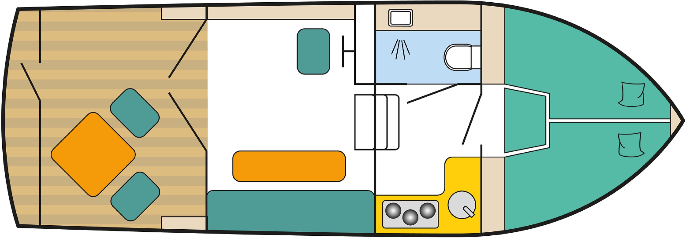 Die JoAnne ist komfortabel ausgestattet und ideal für 2 Personen geeignet. Das Boot ist rundum begehbar. Salon, Außenbereich und Badeplattform befinden sich auf einer Ebene. Bug- und Heckstrahlruder sind vorhanden.
