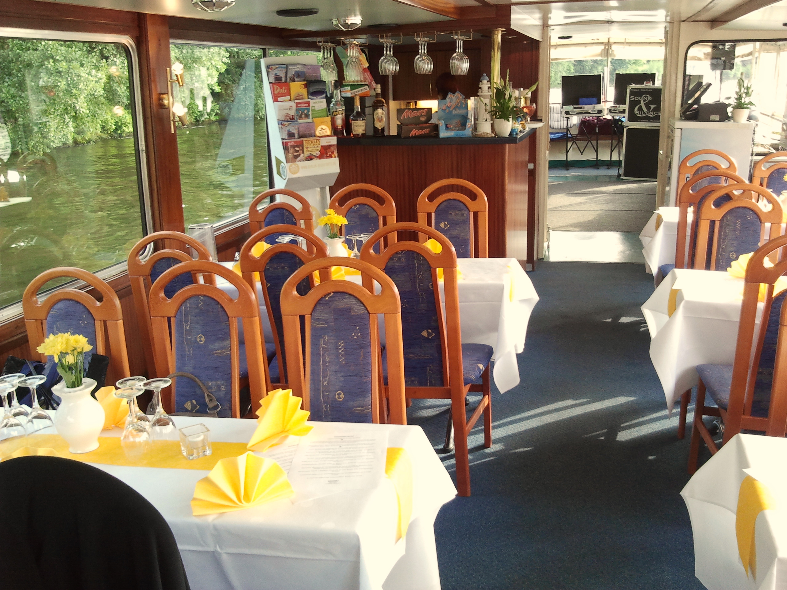 Catering: Für größere Gruppen stehen zwei Caterer zur Verfügung. Buffets können individuell gestaltet werden. Auf der MS Audrey ist kein Grillbuffet möglich.