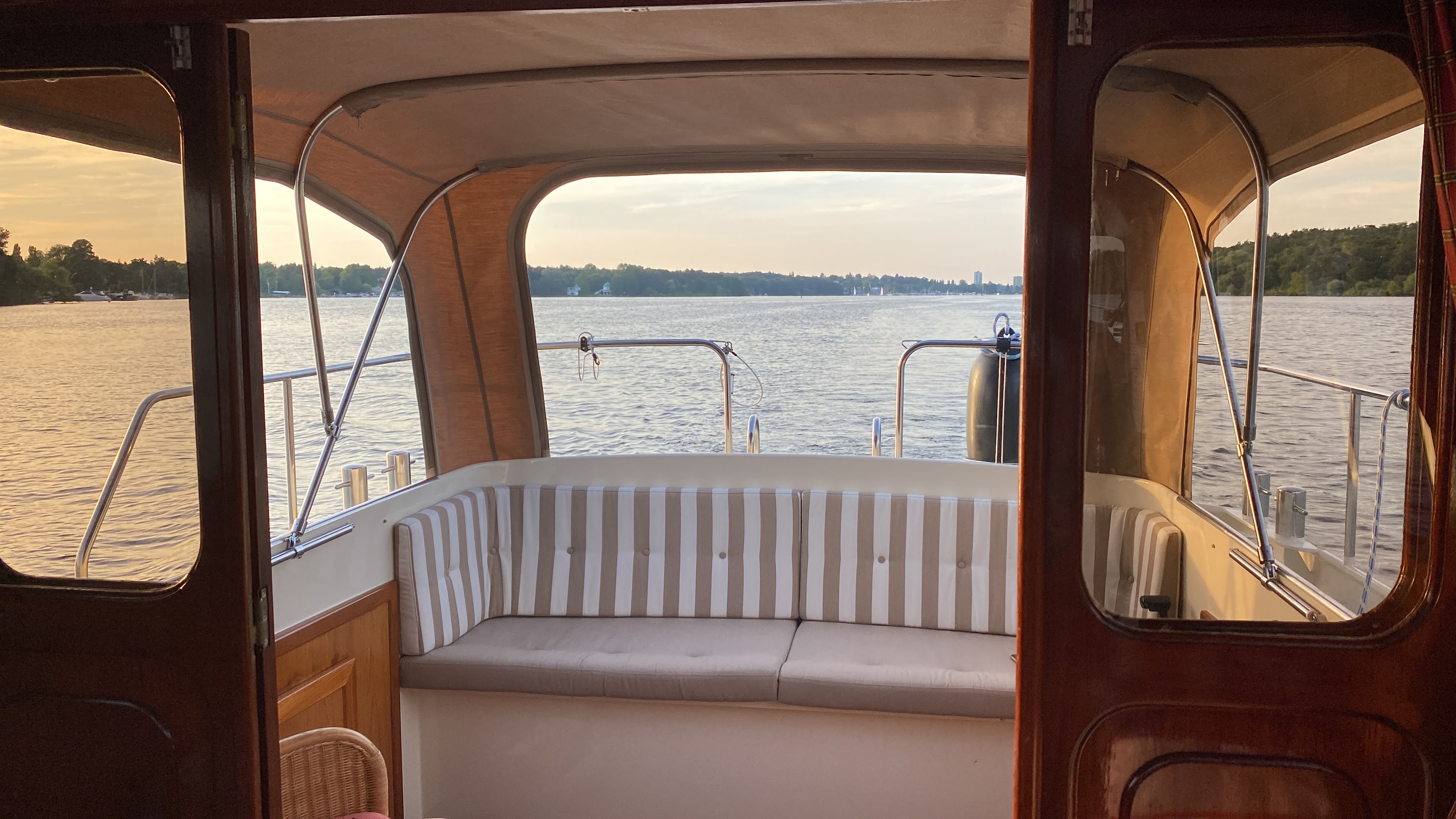 Unser Spree Yacht ist die perfekte Wahl für kleine, exklusive Runden bis zu 6 Personen, die Berlin vom Wasser aus in stilvollem Ambiente erleben möchten. Ob edle Stadtrundfahrt durch die Hauptstadt oder große Ausflugsrunde über Havel, Wannsee bis nach Potsdam – du genießt jede Minute wie im privaten VIP-Shuttle.