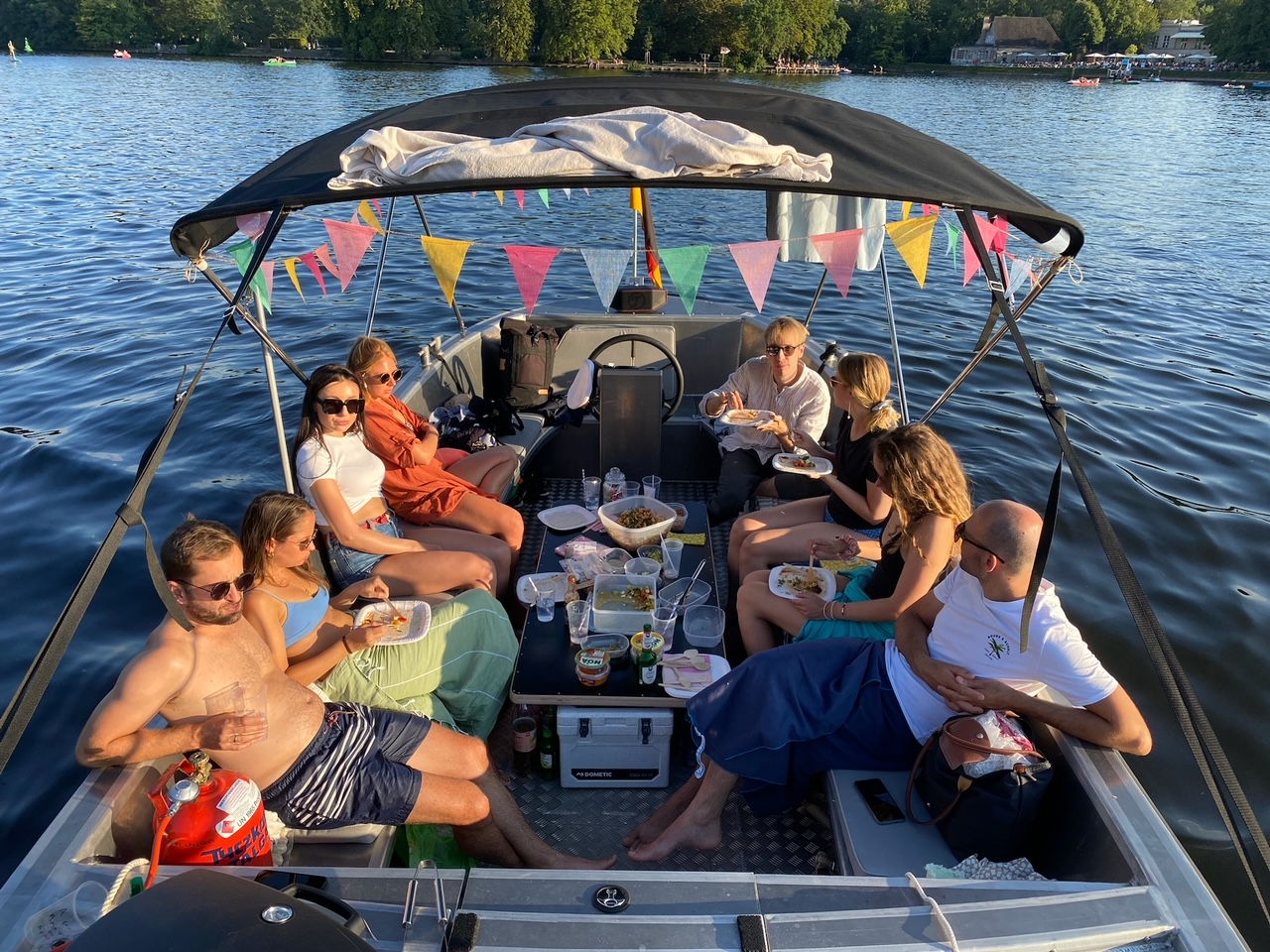 Unsere gemütliche Schaluppe PANAMA ist mit einem Bimini-Verdeck ausgestattet das Schatten spendet und Euch vor Regen schützt. Serienmäßig ist immer ein Bluetooth-Lautsprecher mit an Bord um eure Lieblingsmusik zu hören. Diese Schaluppe ist einfach zu handhaben und verfügen über Staufächer, um eure Snacks, Getränke und persönliche Gegenstände sicher zu verstauen.