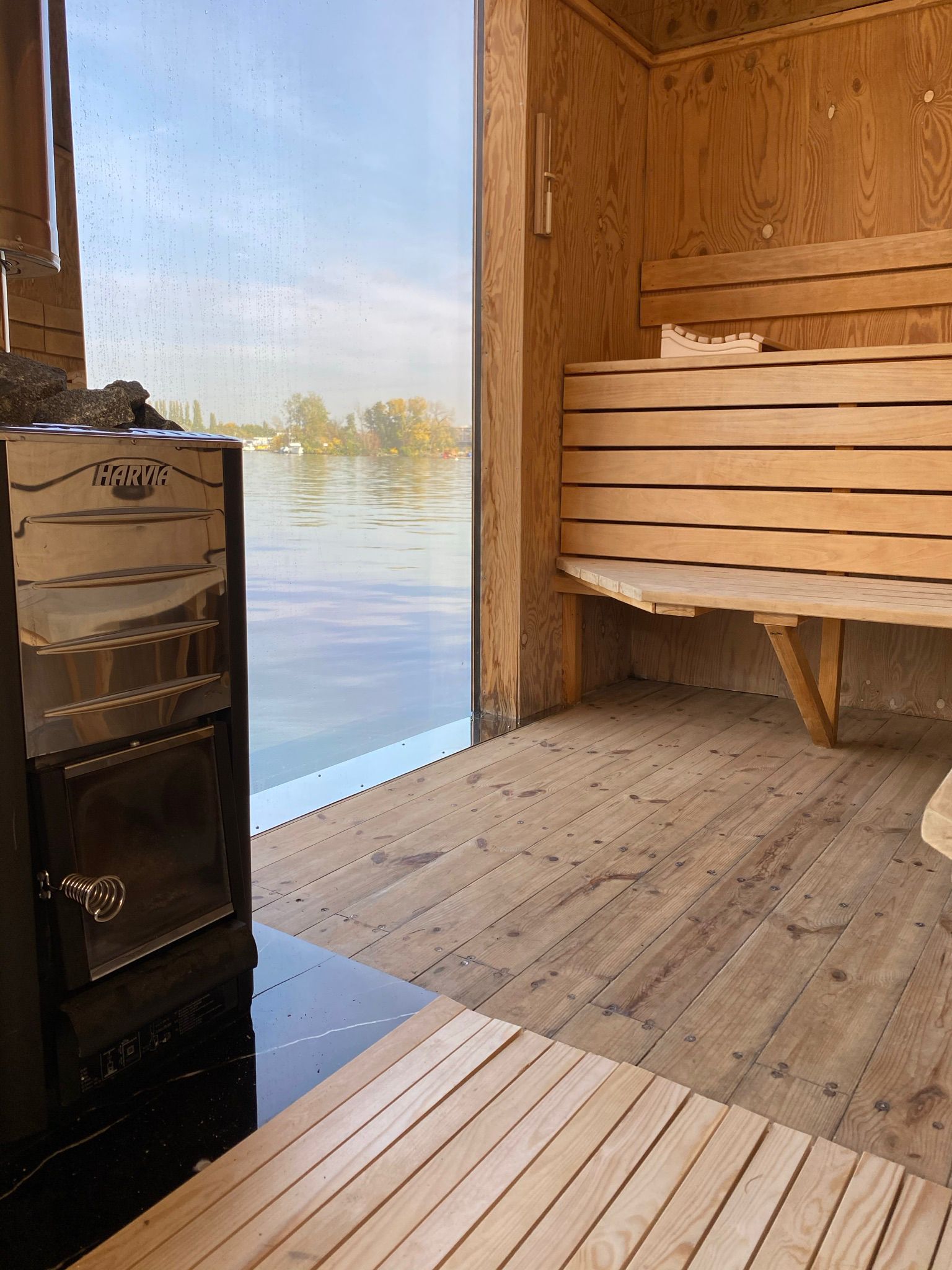 Entspannt Euch bei Drinks und Musik auf der Spree. Dieses Erlebnis eignet sich besonders für romantische Bootstouren. Erlebt Berlin auf die wohl entspannteste Art und Weise. Dank eines bodentiefen Fensters genießt ihr während des Saunaganges einen fantastischen Blick auf's Wasser und Berlin. Das Fenster ist übrigens von außen verspiegelt.