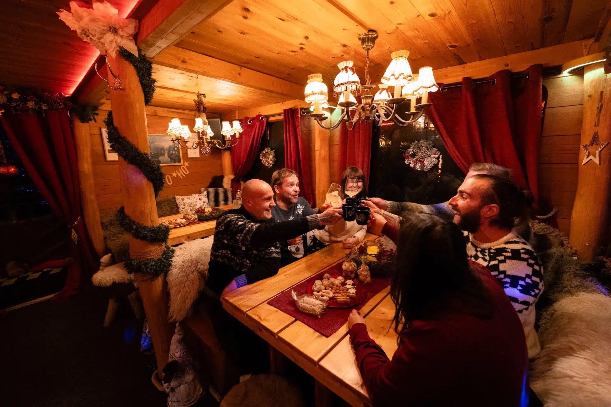 Mieten Sie unser detailreich gestaltetes Winterfloß für bis zu 32 Personen und erleben Sie eine urige Auszeit auf der Spree. In liebevoll dekorierter Umgebung erwartet Sie eine warme, behagliche Atmosphäre – ein Rückzugsort mit Hüttencharme mitten in der Hauptstadt. Ob mit Kollegen, Freunden oder der Familie: Unser Hüttenzauber schafft den idealen Rahmen für stimmungsvolle Abende in der kalten Jahreszeit.